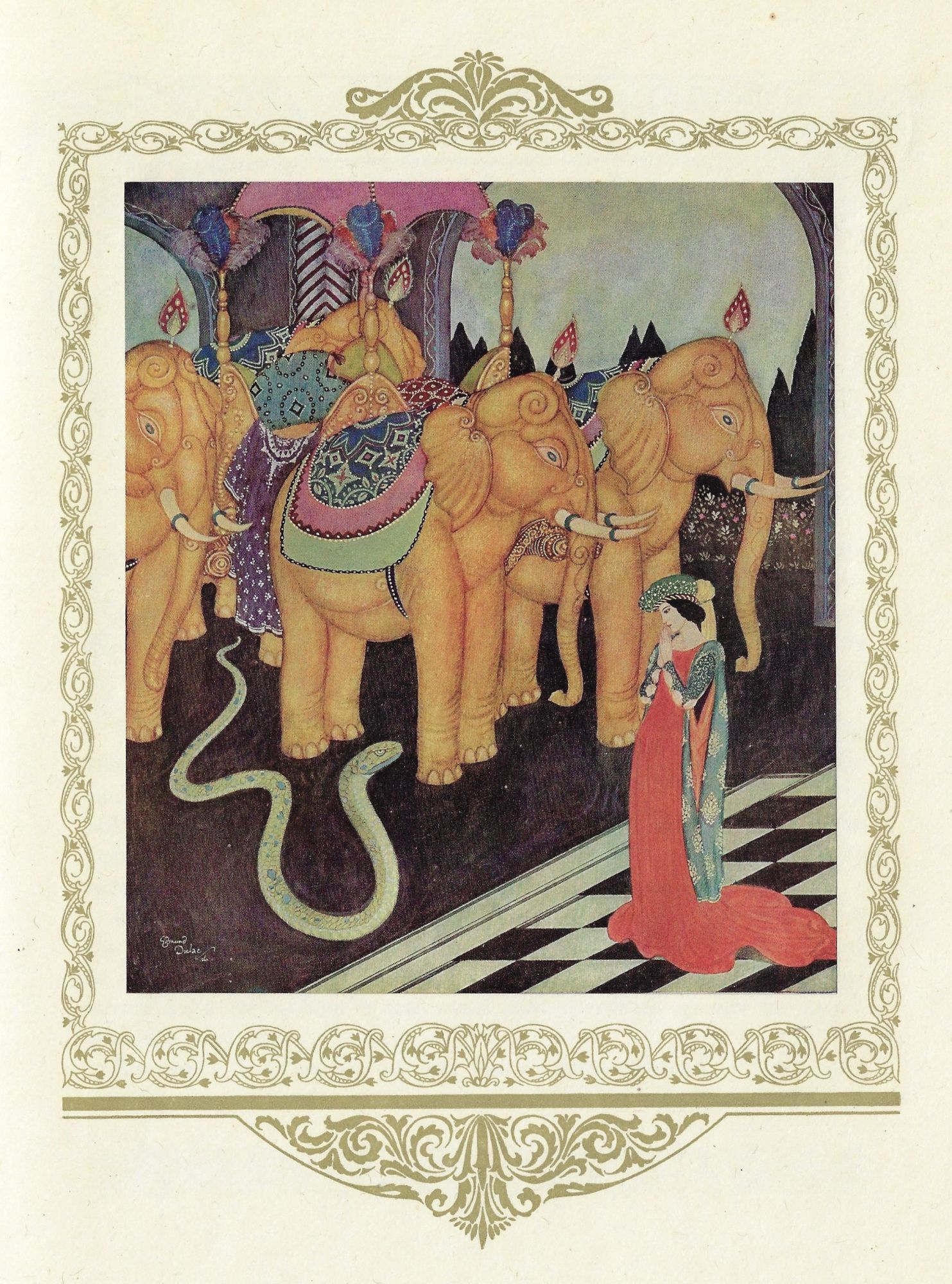 Paris: L'Édition D'Art H. Piazza, 1917. Hardcover. Near fine. First French edition (published in English in 1916). Number 793 of 1000 copies signed by Dulac on the limitation page. Bound in cream cloth with an unidentified monogram on the front board, top edge gilt, original front wrapper and spine bound in at the rear. 11.75" x 9", pp iv, 149, with fifteen mounted color plated with captioned tissue guards, as well as decorative initials, bands, and tailpieces by Dulac. A lovely copy, with some very minor soiling to front board and spine. This selection of tales representing the Allied nations fighting in World War I--including Great Britain, France, Russia, Italy, Belgium, Serbia, Japan, and China--were adapted by Dulac, "clearly with an eye for describing settings and details that he would highlight in his illustrations. The tipped-in color plates...demonstrate through the different styles he employs his keen interest in the folklore and folk art of each country. For example, his illustration to the Chinese tale “The Story of the Bird Feng” takes the form of a Chinese fan. The Japanese tale “Urashima Taro” is represented by a subtle watercolor clearly influenced by Ukiyo-e woodblock prints. Perhaps most spectacular of all are the illustrations for the Russian tales “Ivan and the Chestnut Horse” and “The Fire Bird,” both of which owe a debt to Leon Bakst’s opulent stage designs for Sergei Diaghilev’s Ballets Russes productions" (Minneapolis College of Art & Design Special Collections).