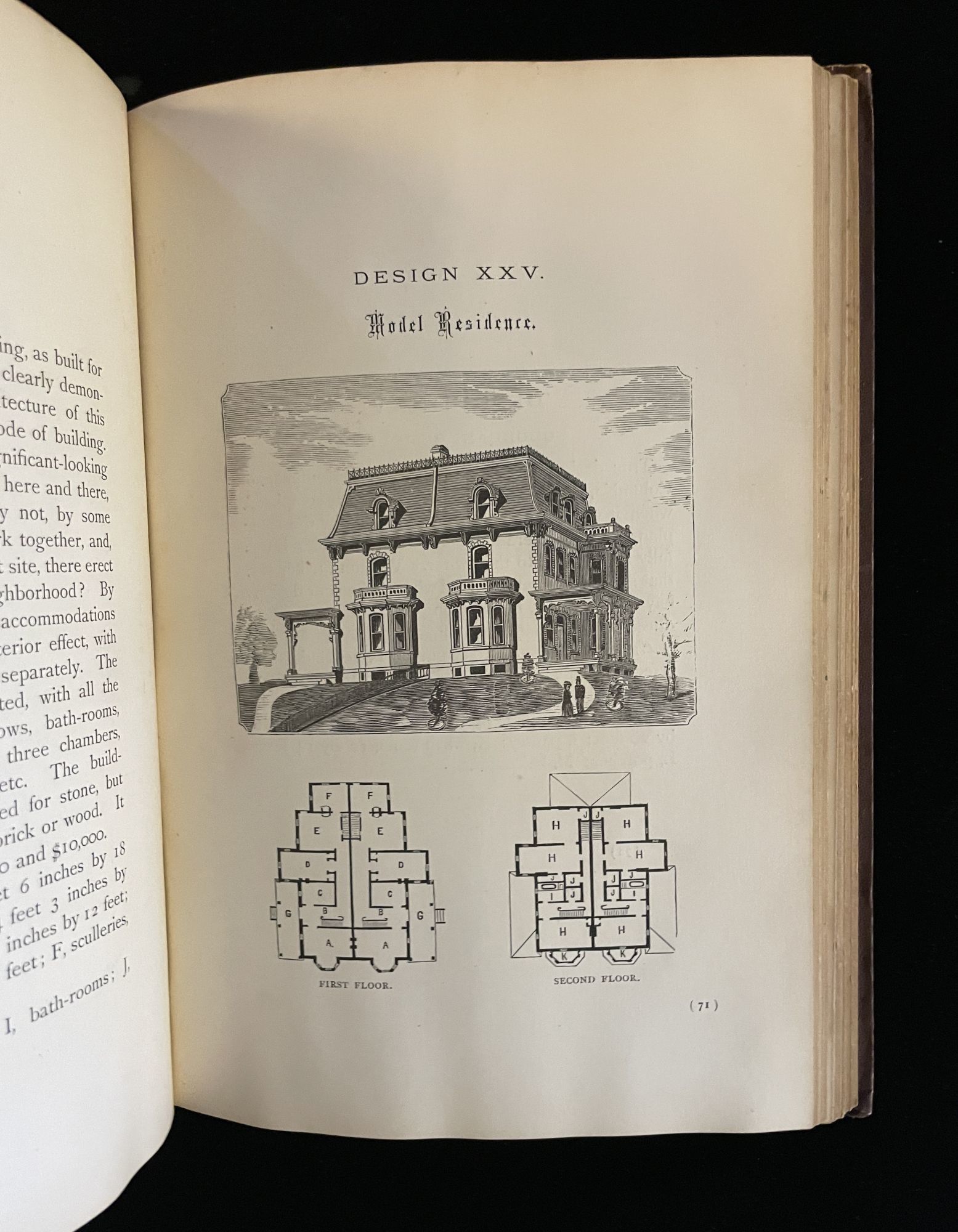 Philadelphia: J.B. Lippincott & Co, 1873. 1st Edition. Hardcover. Very Good. First edition, original brown cloth, gilt pictorial front cover, double-blind ruled, beveled edges, gilt to spine, 189 pp, with designs (plans) for 84 residences, each with a full page illustration and floor plan. Hitchcock 595. Corners moderately worn, shallow cloth loss spine ends, cloth moderately soiled. Internals clean. Solid, unsophisticated copy.
