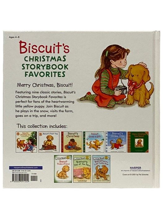 New York: Harper, 2001. Revised Edition. Large Hardcover. Fine/No Jacket - Pictorial Cover. 9x0x9. Schories, Pat. Brand new from publisher. Includes sticker sheet. 2001 Large Hardcover. 192 pp. Merry Christmas, Biscuit! Celebrate the spirit of the Christmas season with Biscuit, in this classic collection of festive stories that now includes a sticker sheet! Featuring nine complete stories, Biscuit's Christmas Storybook Favorites is perfect for fans of the heartwarming little yellow puppy. In this festive paper-over-board, join Biscuit as he plays in the snow, gets ready for Santa, finds the perfect gift, and more! With full-color illustrations and delightful stories, this Christmas collection is the perfect holiday gift. This classic collection of seasonal stories includes: Biscuit's Christmas Eve, Biscuit's First Trip, Biscuit's Christmas, Biscuit Finds a Friend, Biscuit Gives a Gift, Biscuit's Day at the Farm, Biscuit's Snowy Day, Biscuit and the Lost Teddy Bear, and Merry Christmas, from Biscuit. This collection was originally published as Biscuit's Christmas Storybook Collection.