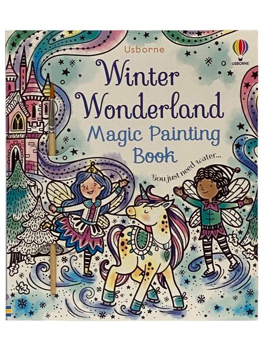 London: Usborne Publishing Limited, 2023. Reissue. Soft Cover. Fine. 8x0x9. Bongini, Barbara; Ritson, Emily. Brand new from publisher, includes paintbrush. 2023 Soft Cover. [32 pp.] Filled with wintry whimsy, from ice-skating unicorns to snow castles, northern lights and other fantastical delights. Use the brush provided to sweep water over the designs and festive colors magically appear! A mess-free way to keep children busy for long winter nights and for the holidays. Simply tuck the waterproof back flap under each page as it's painted, to stop water from seeping through to the rest of the book.