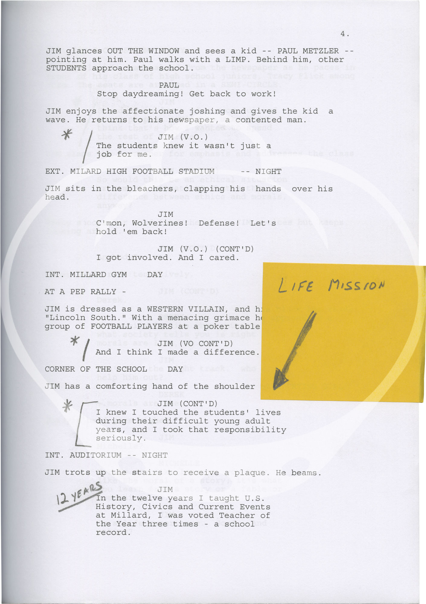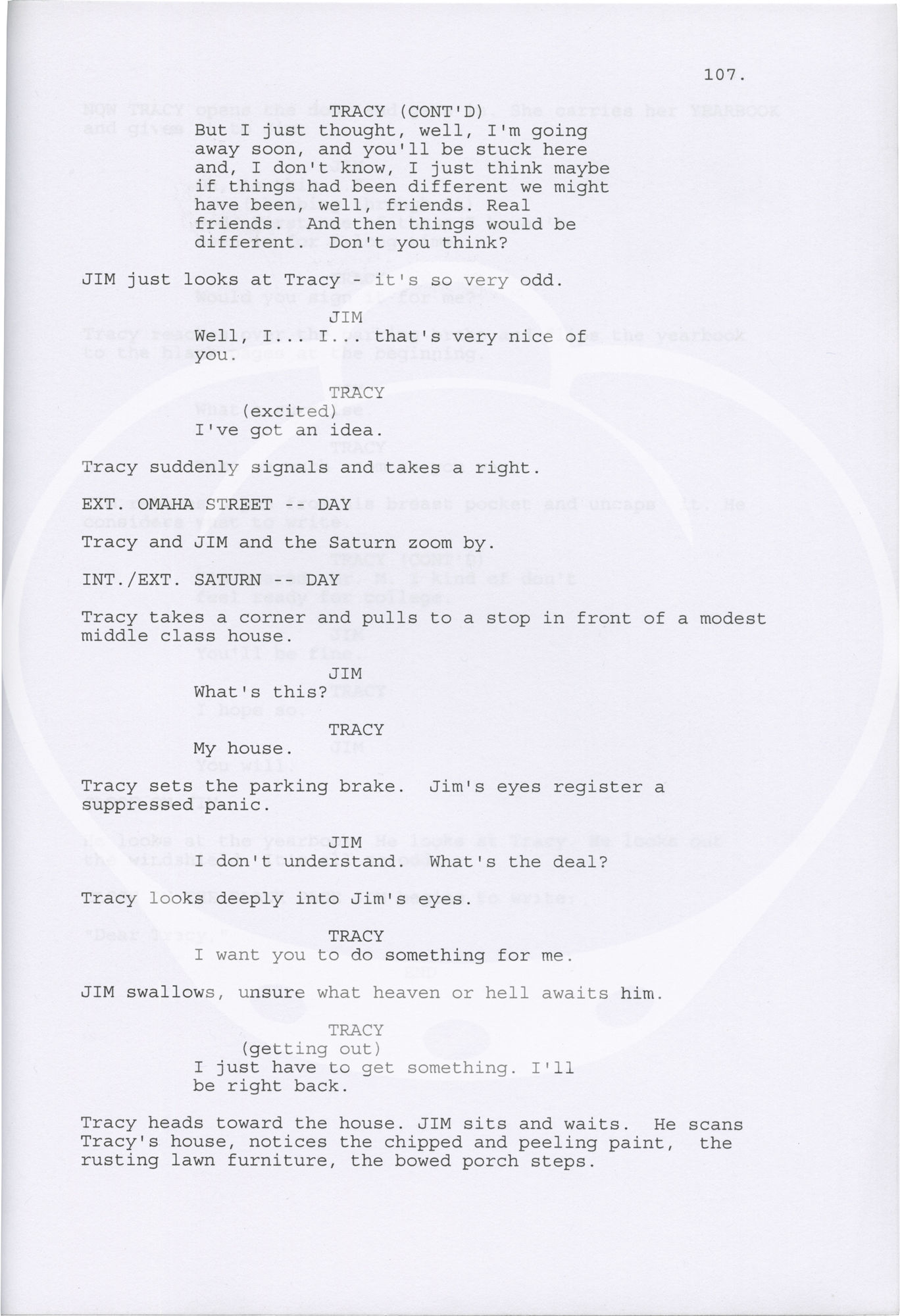 N.p.: N.p., 1997. Third Draft script for the 1999 film. With manuscript ink annotations relating to the character of Jim McAllister on several pages, possibly in the hand of screenwriter Jim Taylor, and post-it notes with annotations in the same hand attached to five pages.