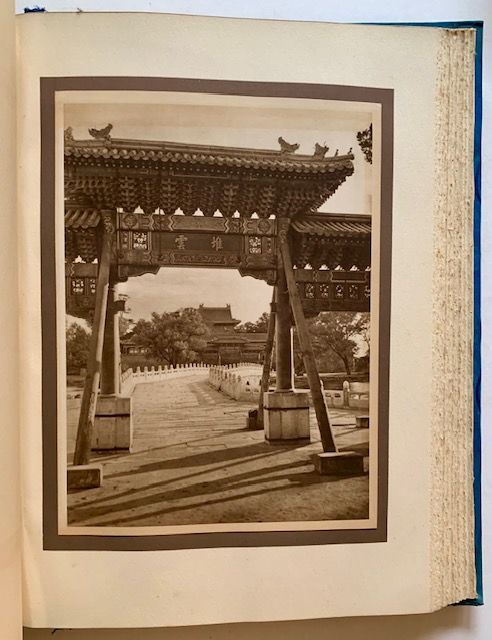 Shanghai: A.S. Watson & Co, 1921. Silk. Very Good +. A handsome copy of the January 1921 stated 2nd edition. Tight and VG to VG+ in its blue-silk covers, with bright gilt-titling along the front panel. A bit of light, forgiveable soiling to the panels but very little wear to the silk to speak of, save for one tiny chip (the size of half a dime) at the lower spine. Internally very sharp, with faint foxing at the preliminaries and all 66 plates in crisp, superb condition. Folio, the text by the British author Putnam Weale (1877-1930). The gorgeous full-page gravures along the rectos, their captions along each facing verso.