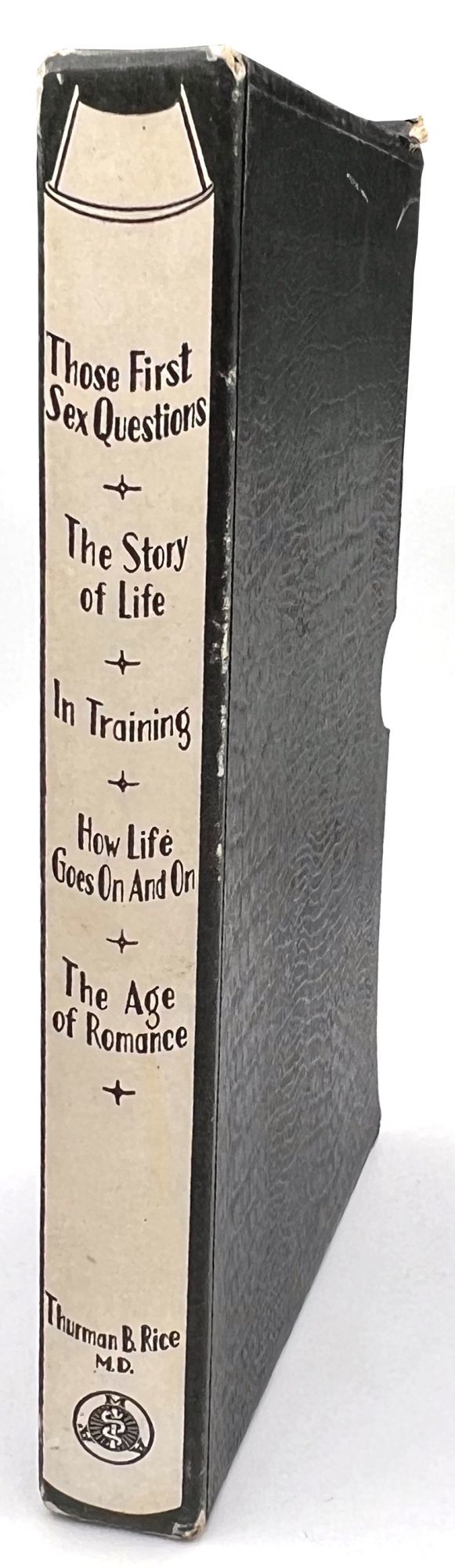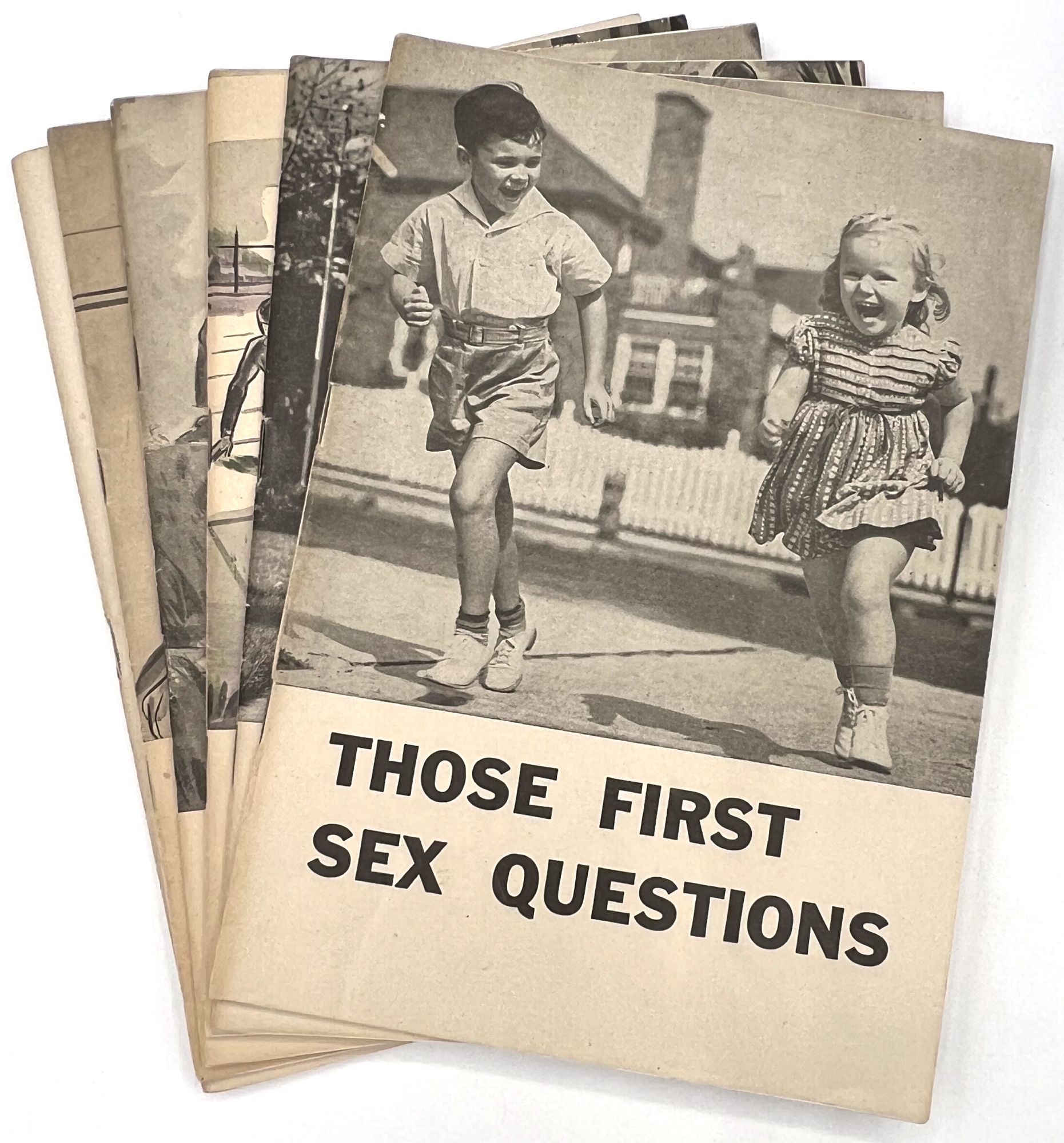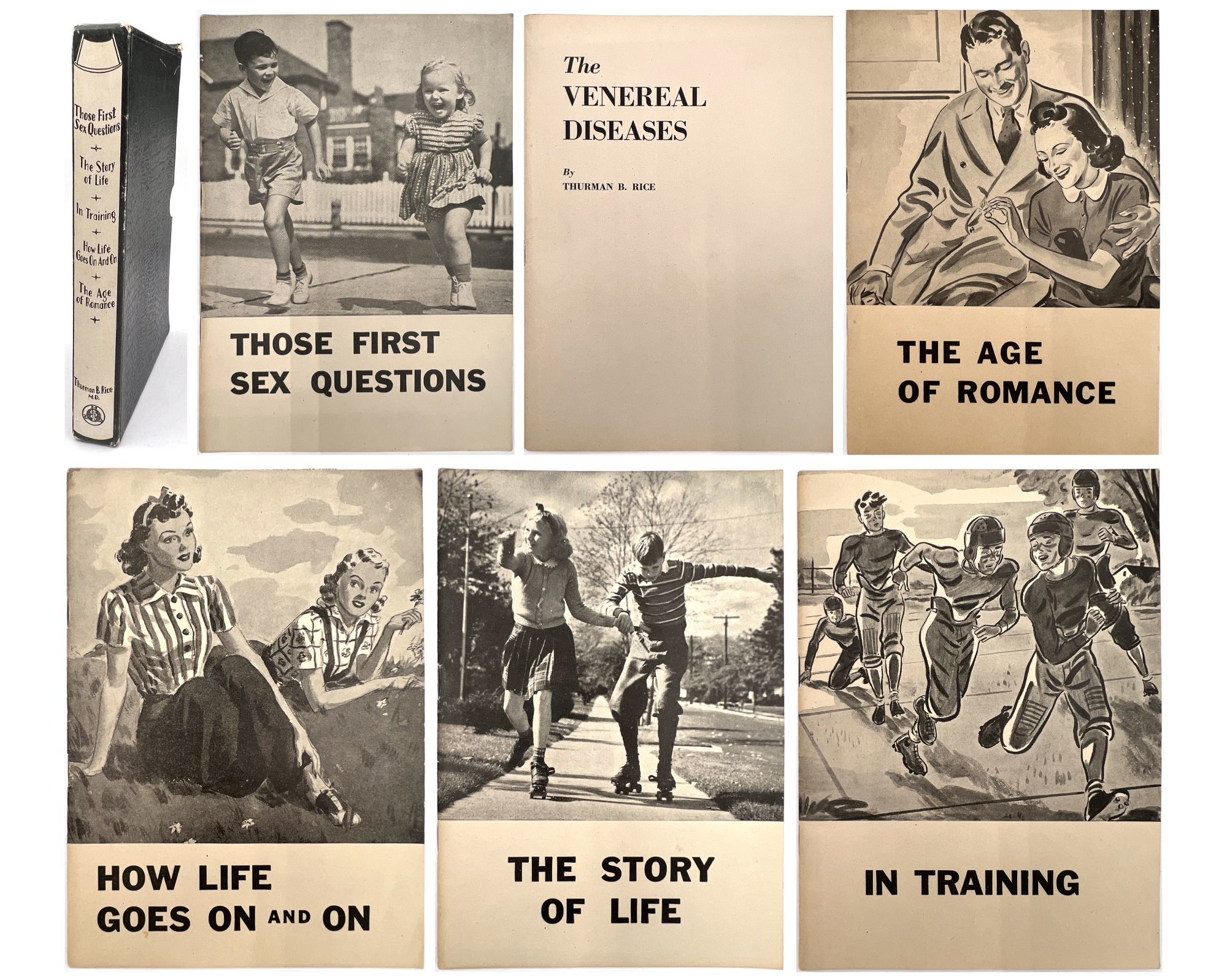 Chicago, Illinois: American Medical Association, 1948. Very good. Some wear to slipcase, toning and general wear to booklets including short tears.. A scarce set of six (6) sex education booklets in their original slipcase, published together by the American Medical Association and originally penned by the psychologist Thurman B. Rice, M.D. in the 1930s. Covers topics ranging from how to answer young children's questions about sex, to venereal disease in sexually active adults; together, they form an invaluable look into sex education and gender roles c.1948. The titles include: