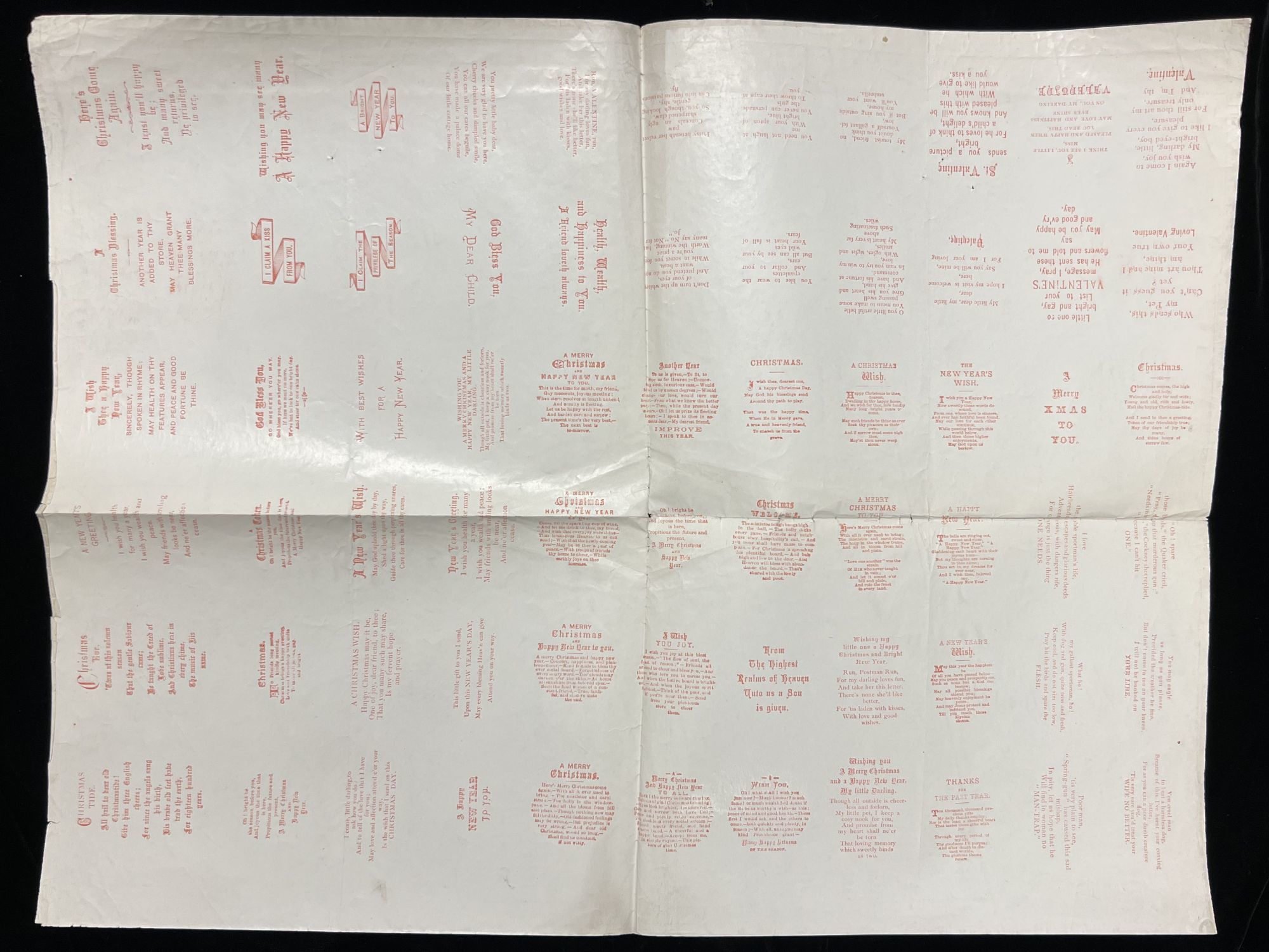 · Eleven (11) sheets of printed sentiments, uncut or partially uncut, including one printed on oiled cloth.