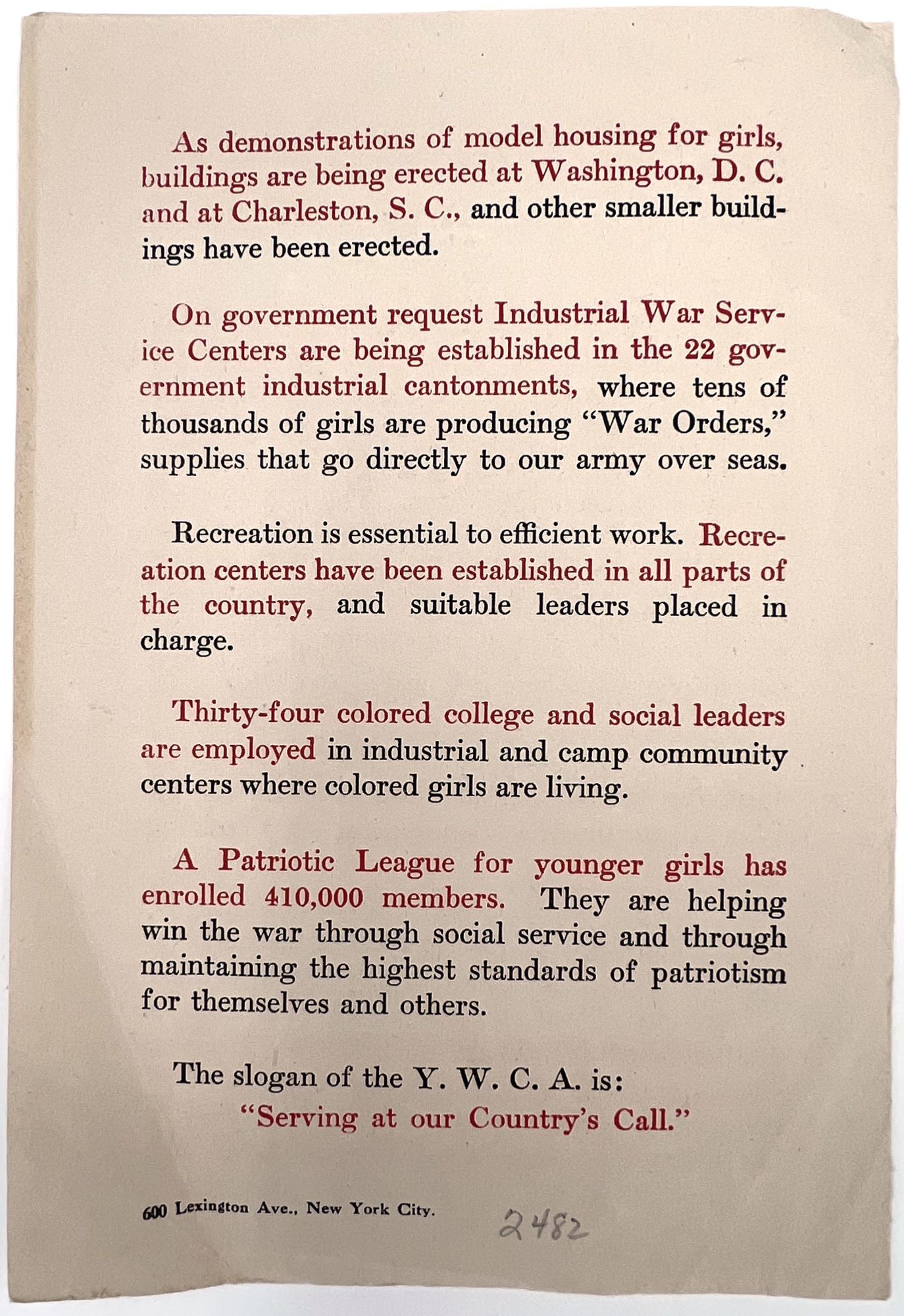 Four (4) Items Relating to the War Work Council of the Y.W.C.A in 1918