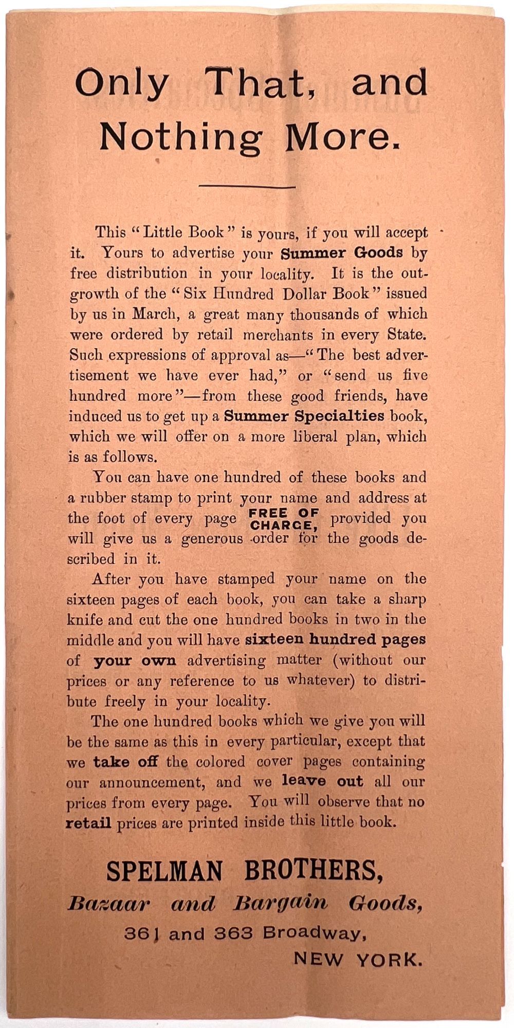 Only That, and Nothing More": c.1905 Spelman Brothers Trade Catalogue - Bazaar and Bargain Goods