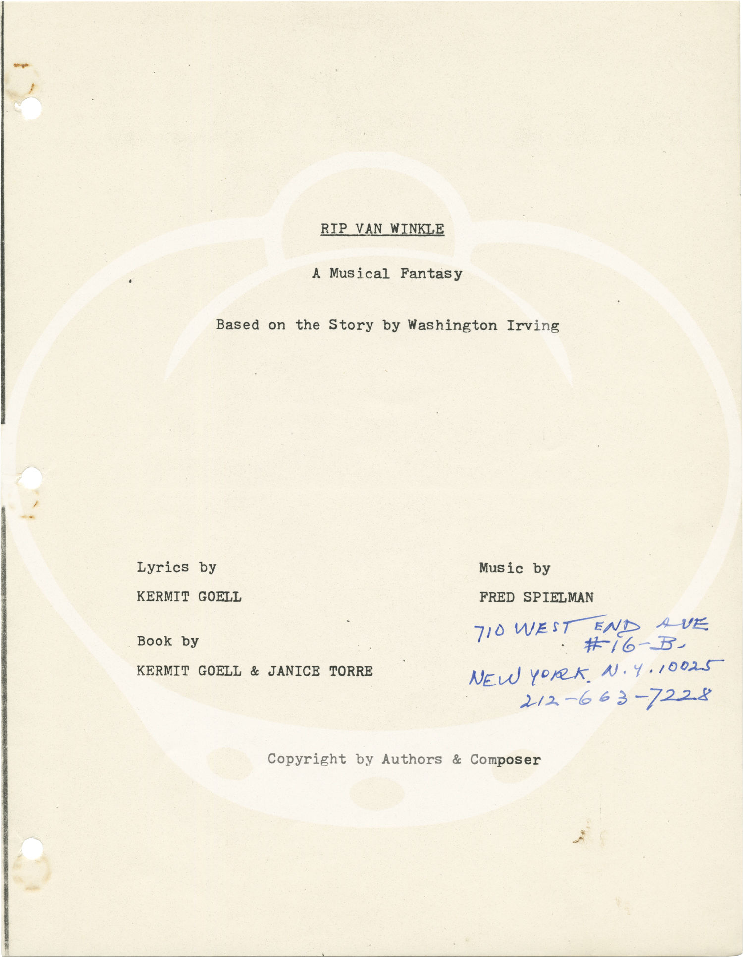 Rip Van Winkle (Vintage script for an unproduced musical play)