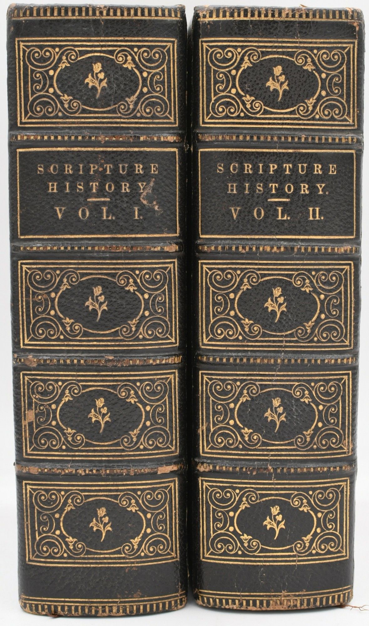 New York: Virtue and Yorston, 1867. Full Leather. Very Good binding. Two 12mo. volumes; in full black morocco bindings, with double rules and elaborate borders in gilt, with raised bands, and decorations and lettering in compatrments; dentelle turnins; all edges gilt; the upper board of both volume with gift inscriptions stamped in gilt ("Grace H. Laflin from Her Father, January 1, 1868); (vi), 320 pages; (iv), 320 pages; with folded frontispiece to Volume I, and with engraved title pages to each volume, and with engraved plates throughout.~~Grace Laflin was the daughter of Addison Laflin, who was a Representative from Massachusetts in Congress. His daughter Grace was born in 1857, and died in 1914.~~. Very Good binding.