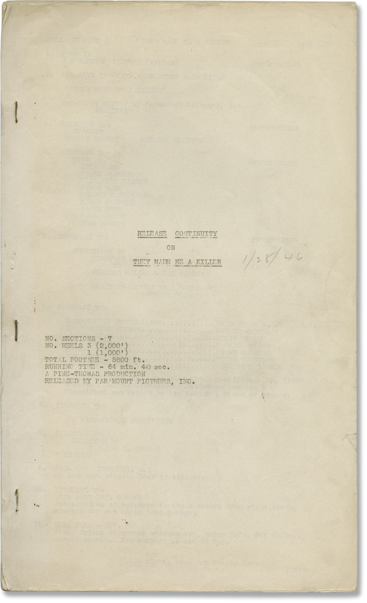 Hollywood: Pine-Thomas Productions, 1946. Post-production Release Continuity script for the 1946 film.