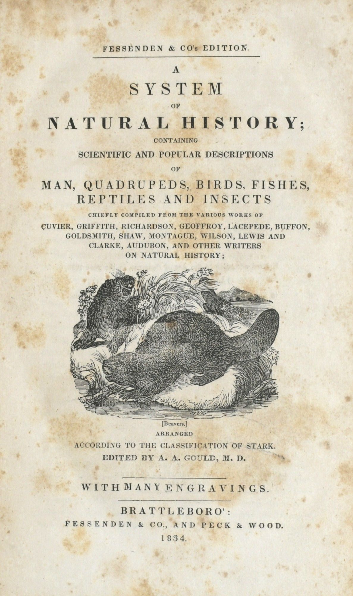 Brattleboro: Fessenden & Co., & Peck & Wood, 1834. Hard Cover. Good binding/no dust jacket. Large 8vo; in full mottled calf, rebacked and retaining the original spine; xxi, [23], 24-879 pages; with many illustrations -- as well as foxing -- throughout; the rear board is loose but holding.~~Augustus Addison Gould was an naturalist, with a specialization in conchology.~~. Good binding / no dust jacket.