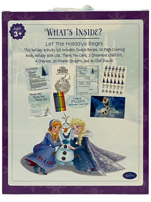 The Magical Tales/Disney Enterprises, Inc, 2019. Unbound. Fine. 4x10x12. New. 2019 Unbound. The perfect holiday activity kit. Bake cookies using Elsa's Favorite cookie recipe. Make your own ornament with 3 piece crafting kit. Color the 10 page coloring book. Storage case included.