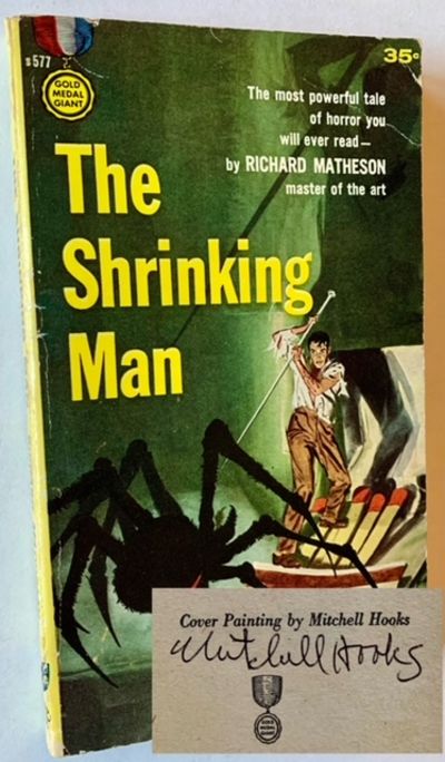 New York: Fawcett Publications (Gold Medal Books), 1956. Pictorial wrappers. Very Good +. Mitchell Hooks. The May 1956 true 1st edition of this paperback original, which became the iconic horror film "The Incredible Shrinking Man". THIS COPY SIGNED ON THE TITLE PAGE BY THE ARTIST --MITCHELL HOOKS-- WHO ILLUSTRATED THE WONDERFUL FRONT COVER. A clean, sharp copy, with a bit of light creasing along the edges. Written by the formidable Richard Matheson, who here has created "the most powerful tale of horror you will ever read". Pocket-sized, Gold Medal Giant s577.
