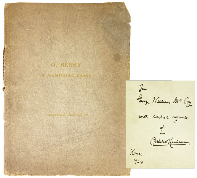 Raleigh: Mutual Publishing Company, 1914. Very Good. [Raleigh: Mutual Publishing Company, 1914.] First Edition. Quarto; publisher's tan cord-bound card wrappers printed in gilt, yapp edges; 32pp.; photographic portrait frontispiece, three leaves of plates. Moderate wear to wrapper extremities including small loss at top fore-edge corner of upper cover, minor soil, textblock lightly foxed, else a Very Good, sound copy overall. Inscribed and signed by the author to University of North Carolina professor of mathematics George William McCoy (1877-1963) in year of publication.