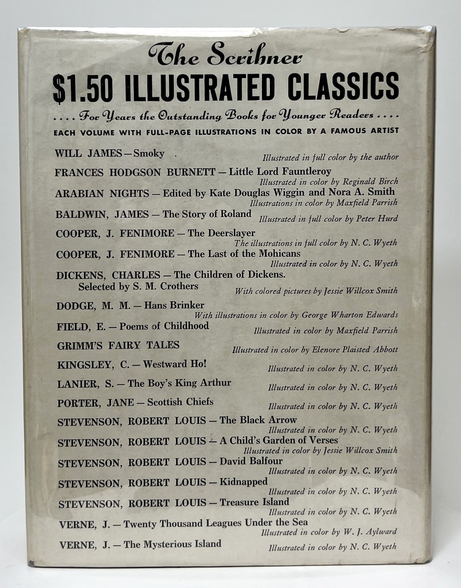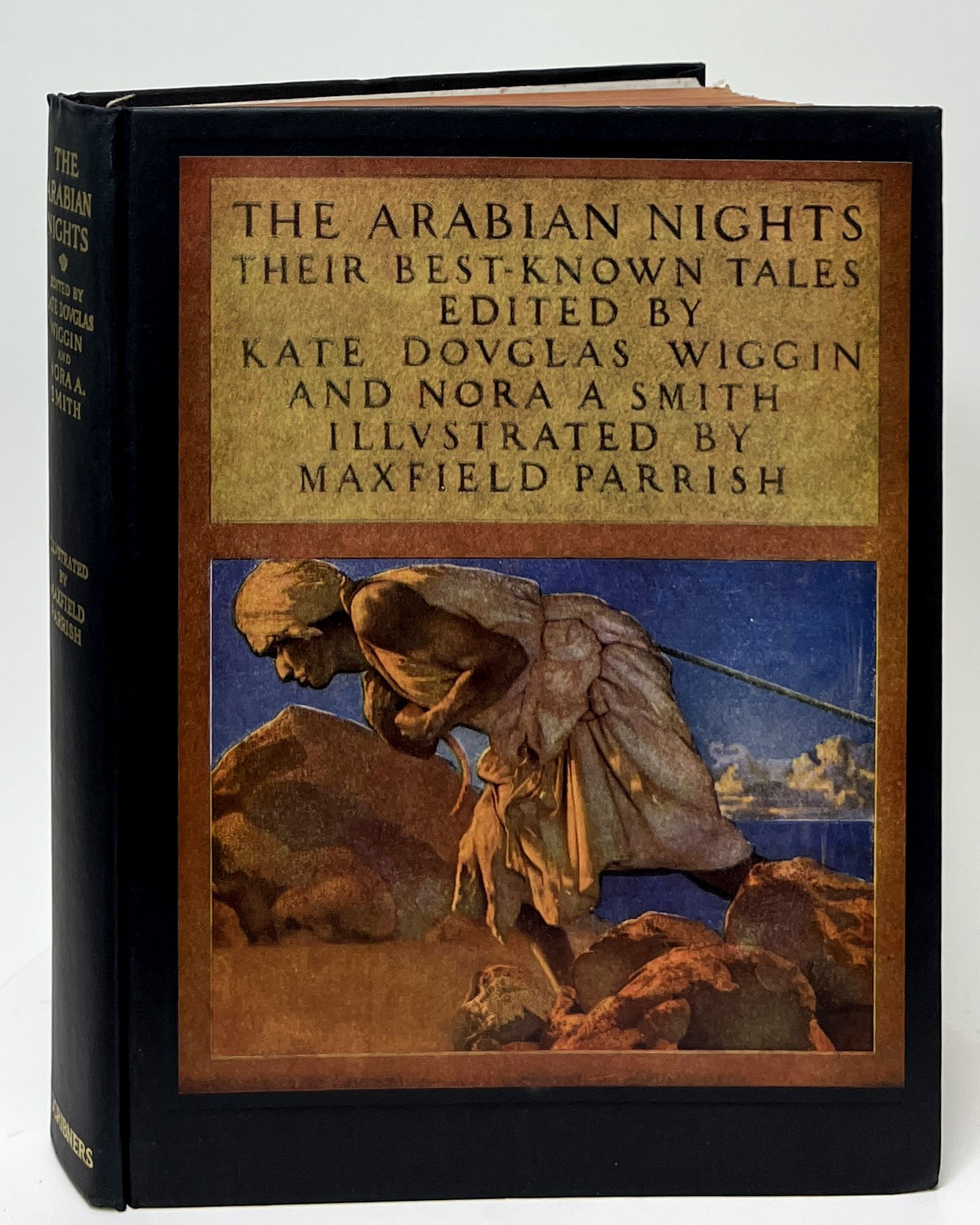 New York: Scribner's, 1942. Hardcover. Very Good/Very Good. Maxfield Parrish. Illustrated by Maxfield Parrish. Early Reprint. About Very Good in a Very Good jacket, unclipped ($1.50), generally toned and soiled, lightly rubbed and chipped at the edges. Black cloth, lightly pushed at the corners, with gilt lettering on the spine, pictorial pastedown on the front panel. Square, front hinge starting, binding solid otherwise. A selection of The Arabian Nights with full-color illustrations by Maxfield Parrish.