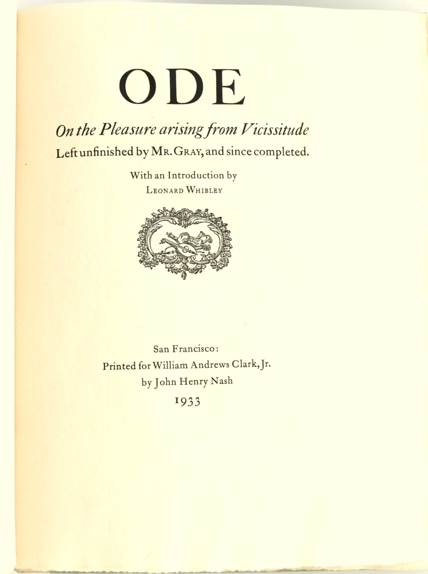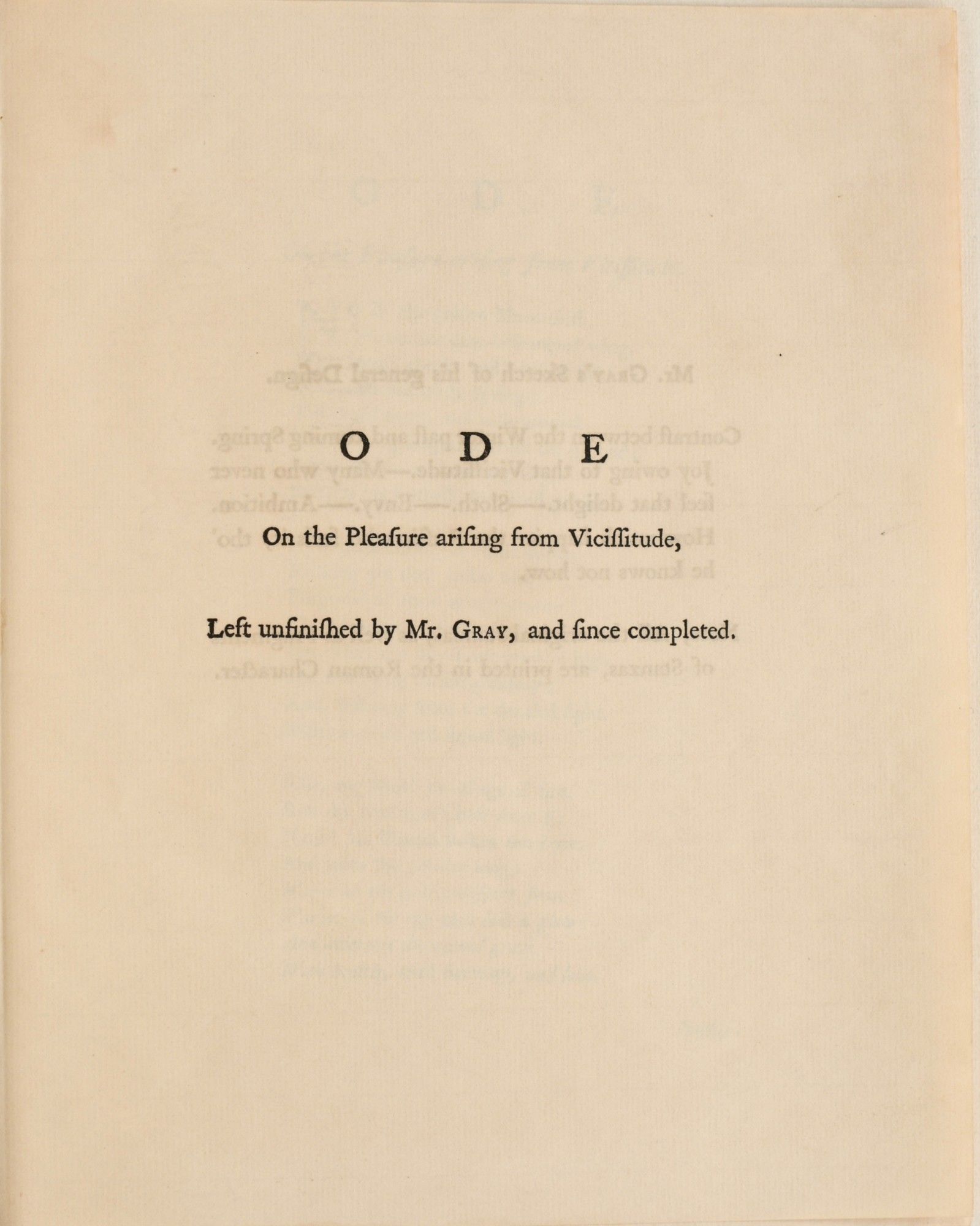 [SPECIAL PRESS] ODE ON THE PLEASURE ARISING FROM VICISSITUDE LEFT UNFINISHED BY MR. GRAY AND SINCE COMPLETED . [2 VOLUMES]