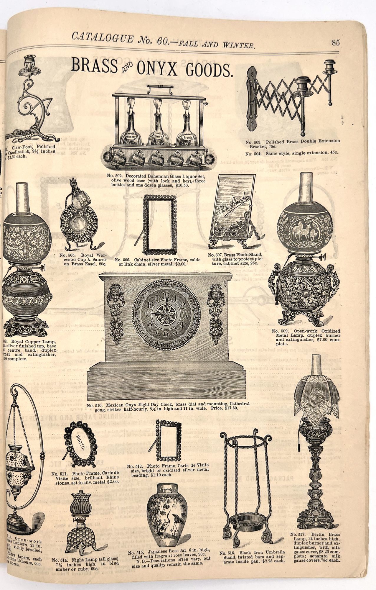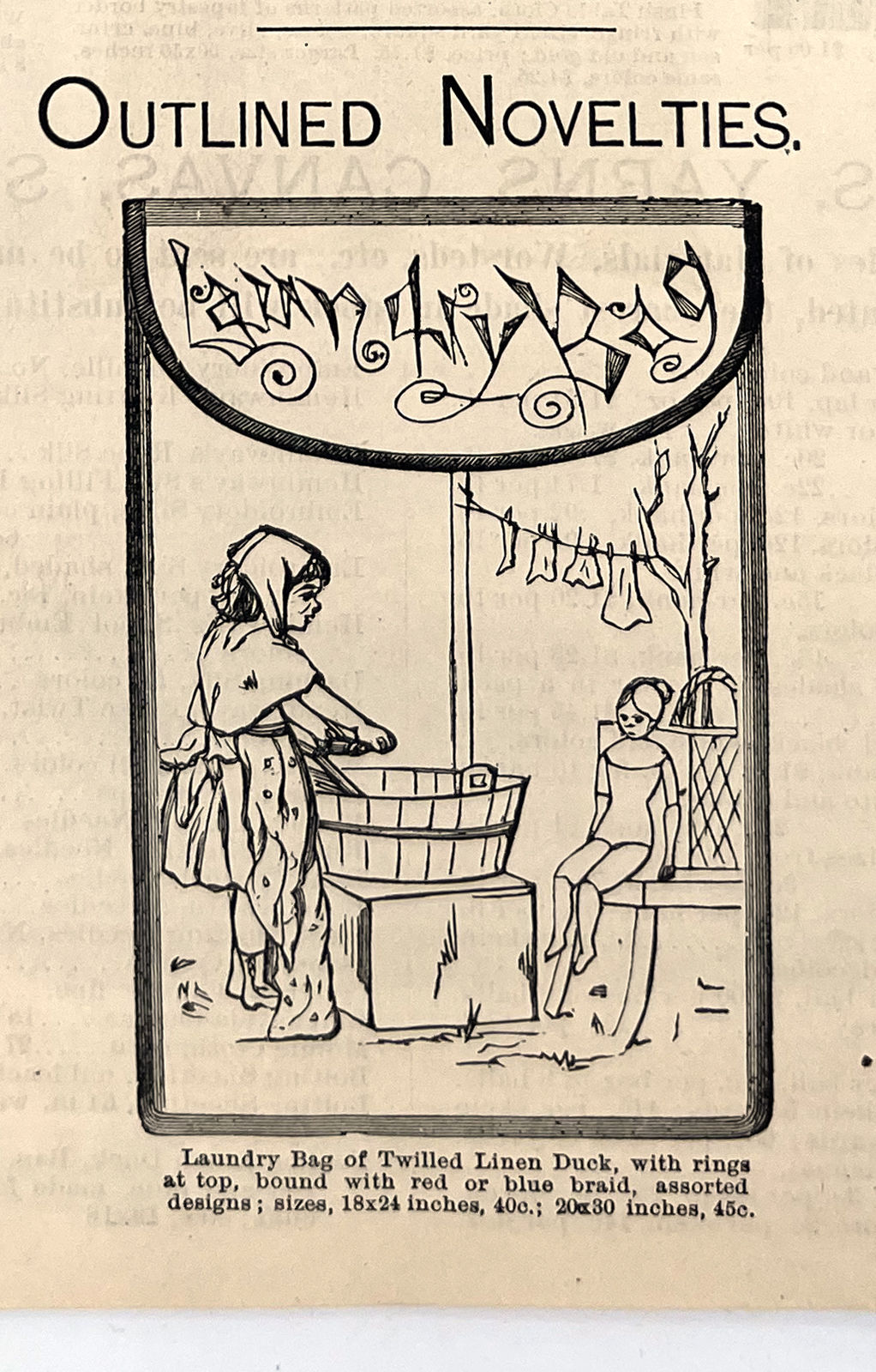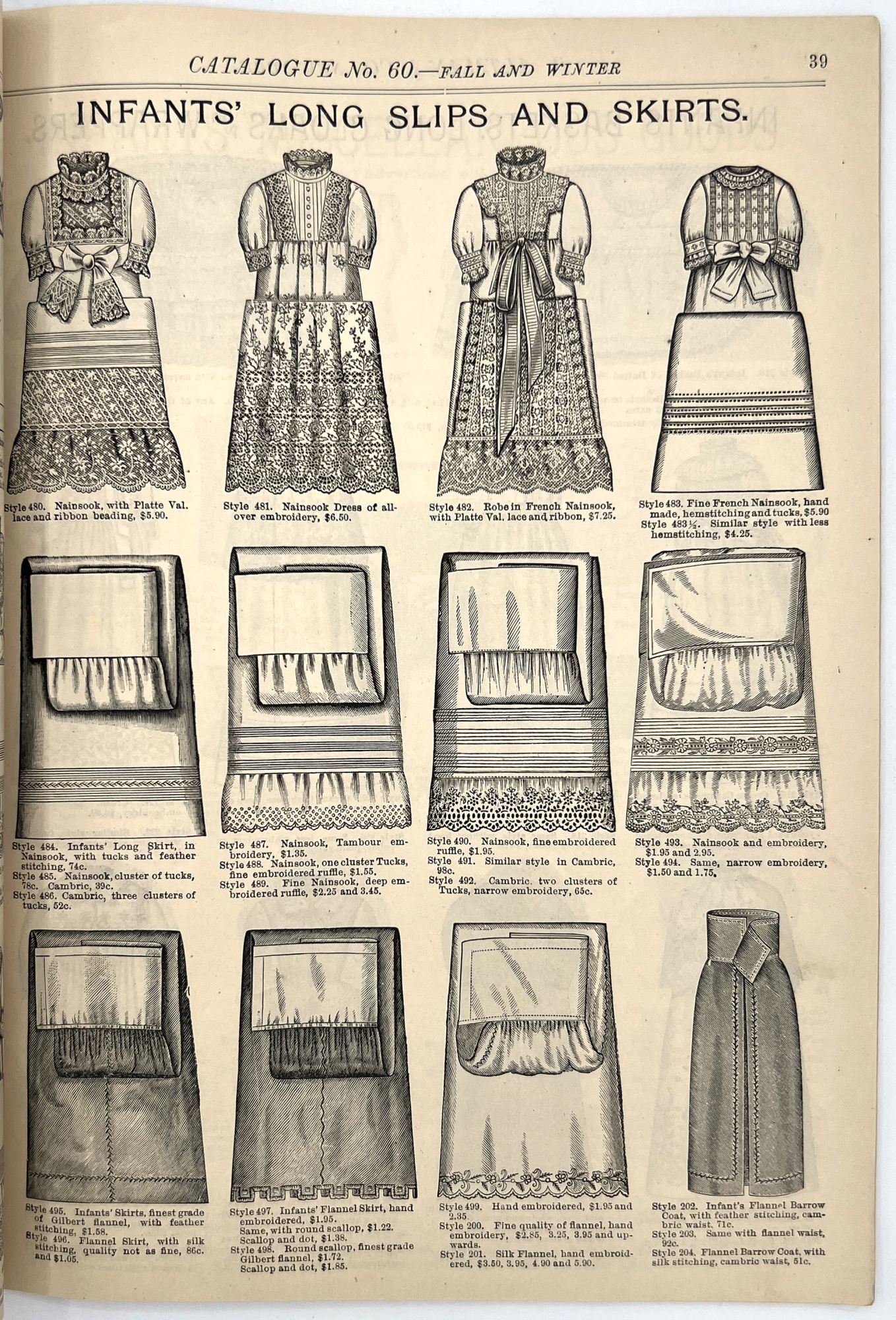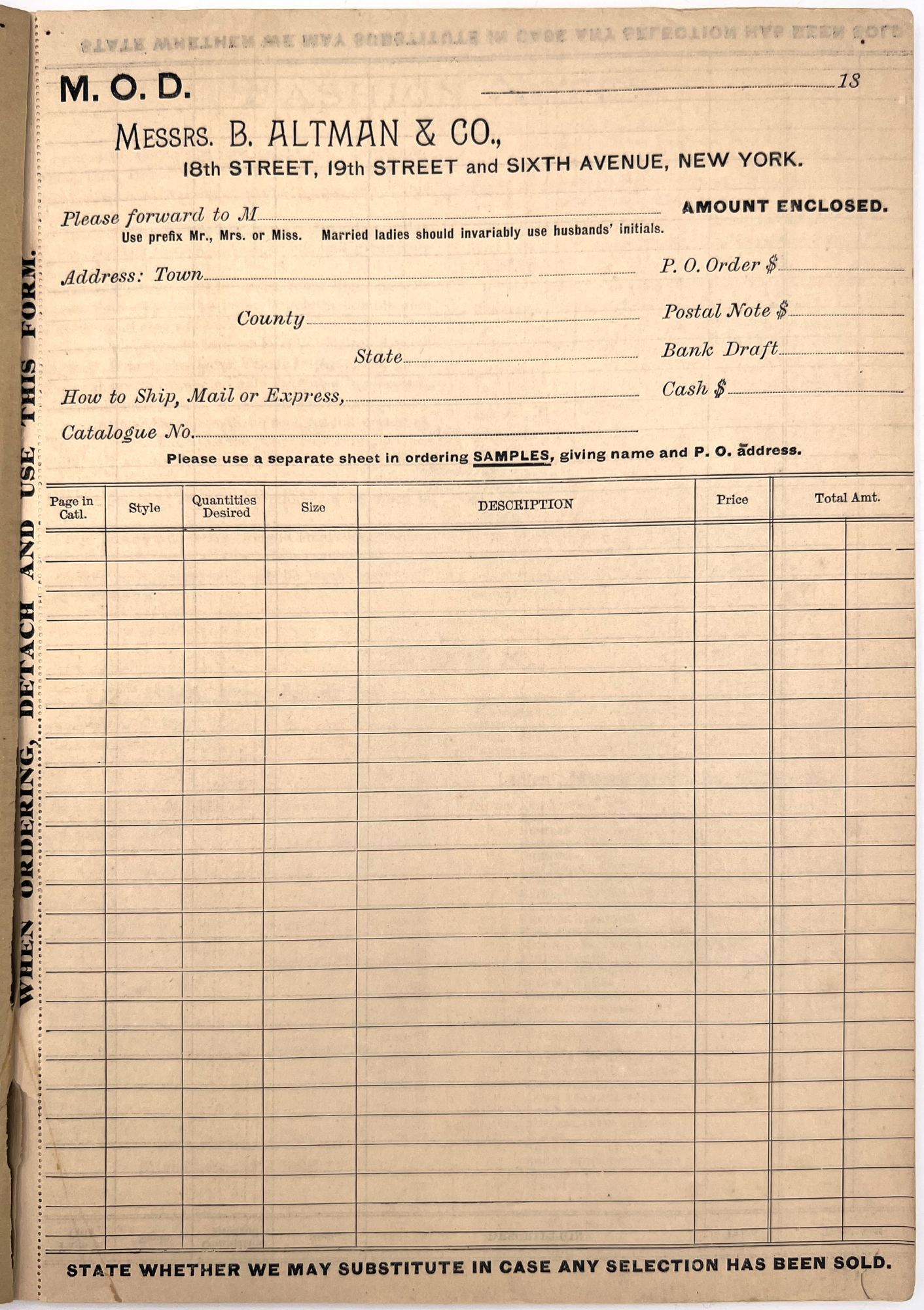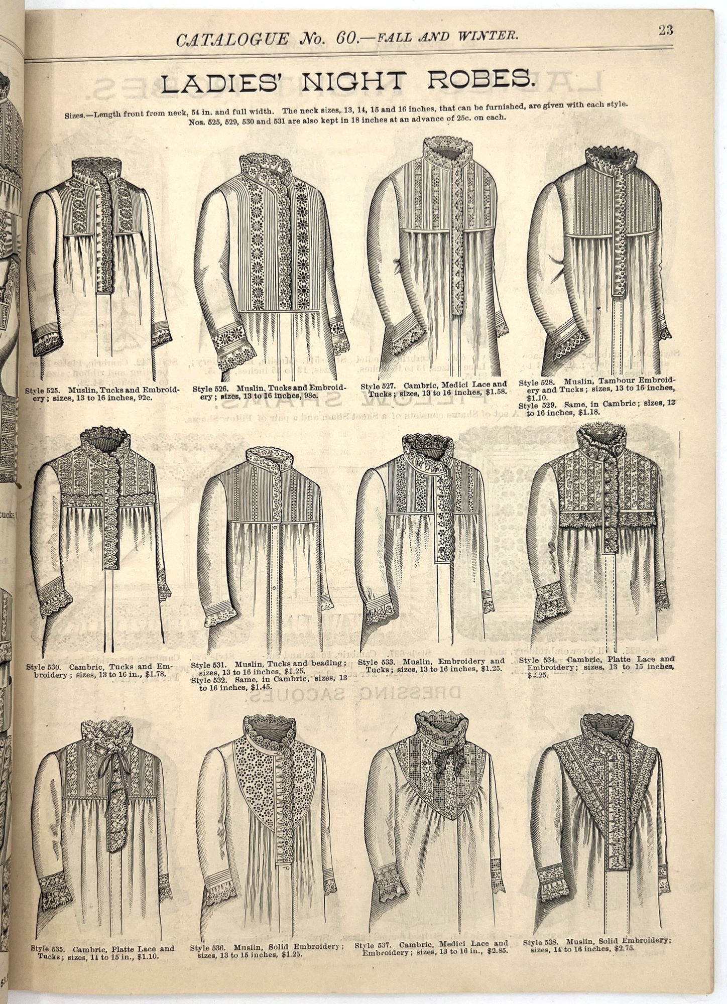 New York, New York: B. Attman & Co, 1889. Very good. Small open tear to upper right-hand corner of upper wrapper. Minor chipping, short tears, toning.. Printed catalogue advertising women's and children's clothing and accessories sold by the B. Attman & Co. of New York, profusely illustrated over its 96 pages. Includes a blank mail-in order form in the front and index, as well as a brief description of the latest trends ("Velvet Ribbons with satin back... In gloves, the various tans are still popular...", etc.). The clothes advertised are from the clothier's Fall/Winter 1889-1890 line of fashion. Each item is illustrated and priced with a style number for easy ordering. Also includes an "upholstery" section selling rugs, tapestries, towels, etc. There is a full page devoted to mourning jewelry, befitting the period.