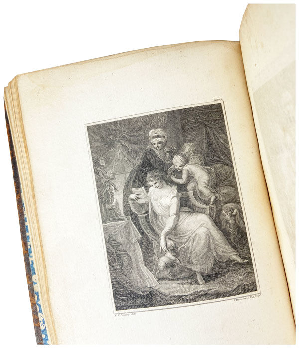 London: C. Bensley / F.J. Du Roveray et al., 1798. Very Good-. London: Printed by C. Bensley; for F.J. Du Roveray, 1798. First Bensley Edition. Octavo; full contemporary gilt-ruled calf, spine elaborately tooled in calf, blue papier-peint endpapers; xxix,[1],79pp.; engrave frontispiece (tissue-guard) and five leaves of plates. Boards scuffed at extremities, front board rather crudely reattached, else a Very Good, internally clean and bright copy.