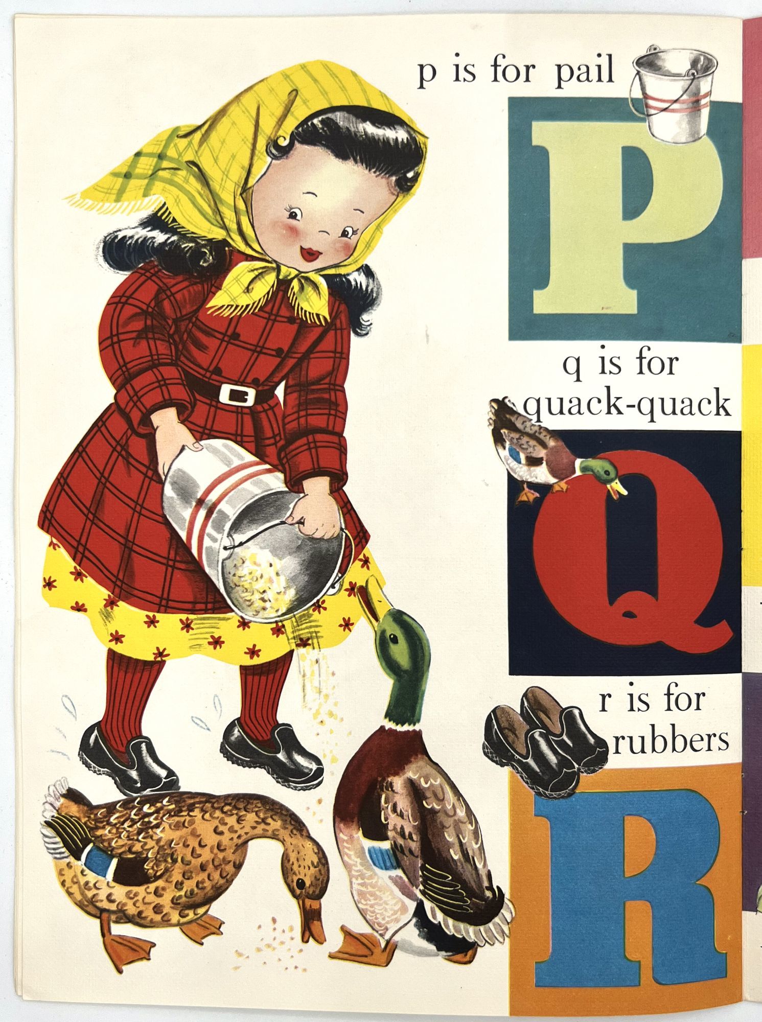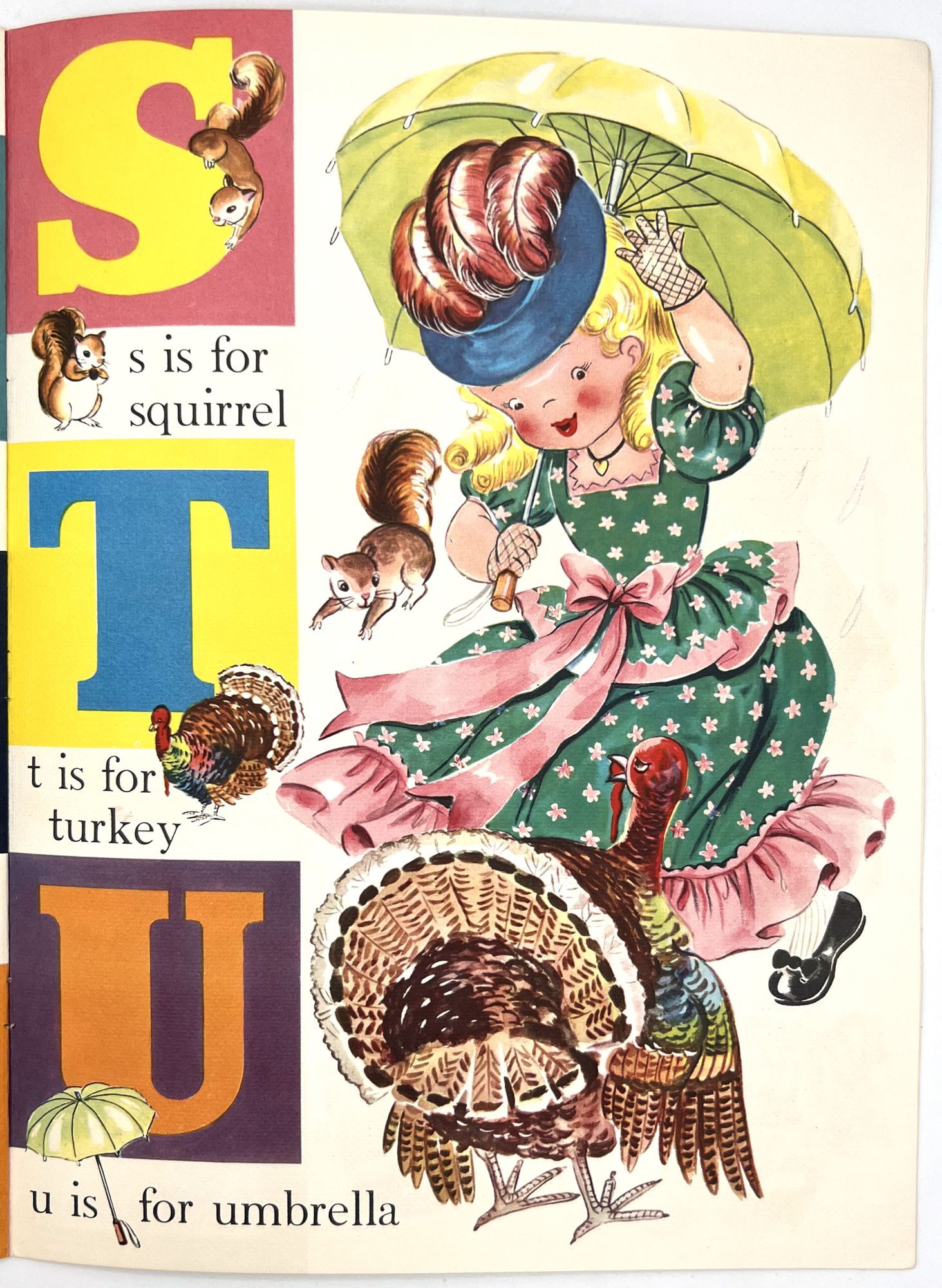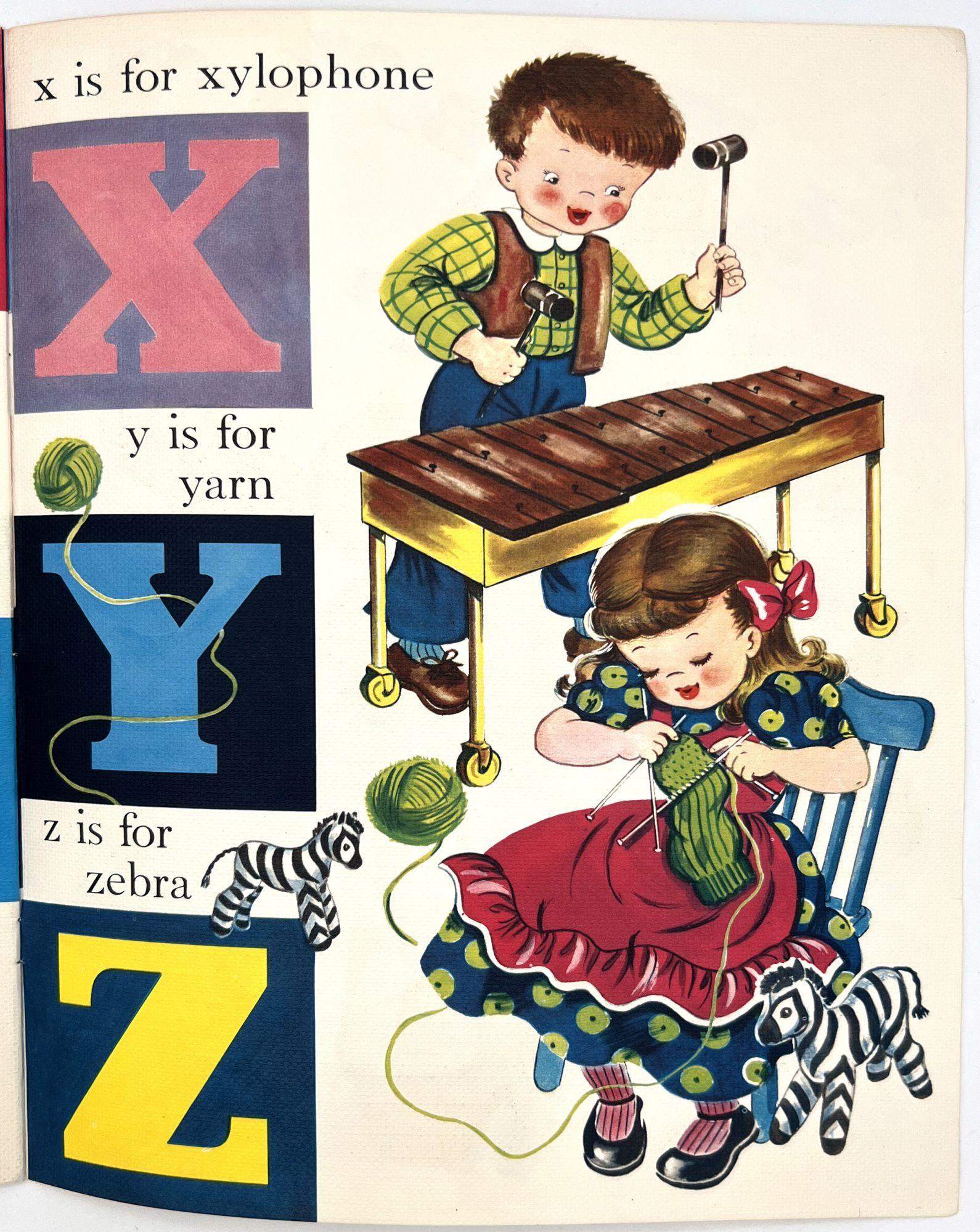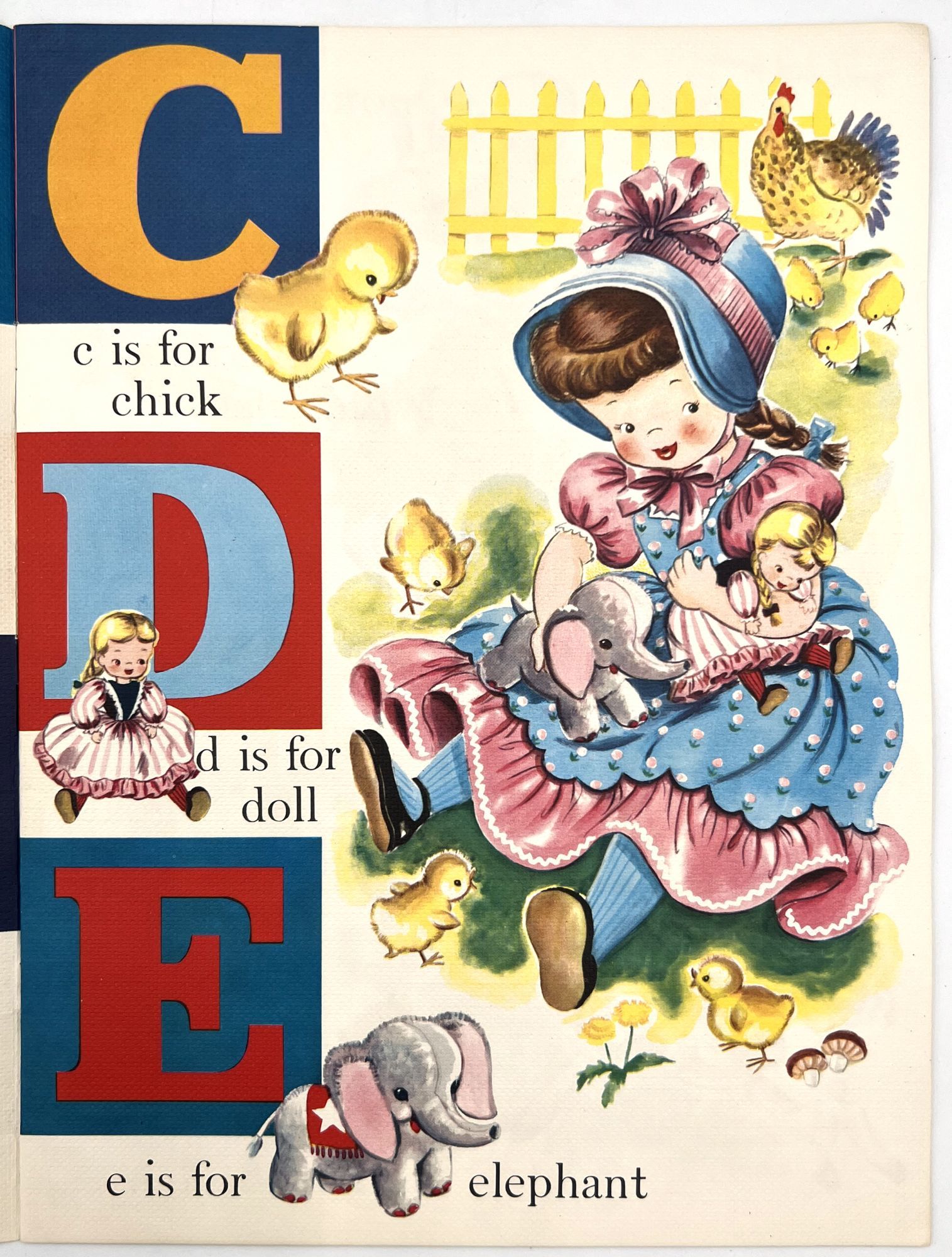 Chicago: Merrill Company Publishers, 1958. Excellent.. Large format linen-like picture book alphabet with imagery and text relevant to the alphabet letter. Unnumbered pages. Measures 13" x 9 1/2". Vibrant color. Autographed by the illustrator. Vivian Robbins.