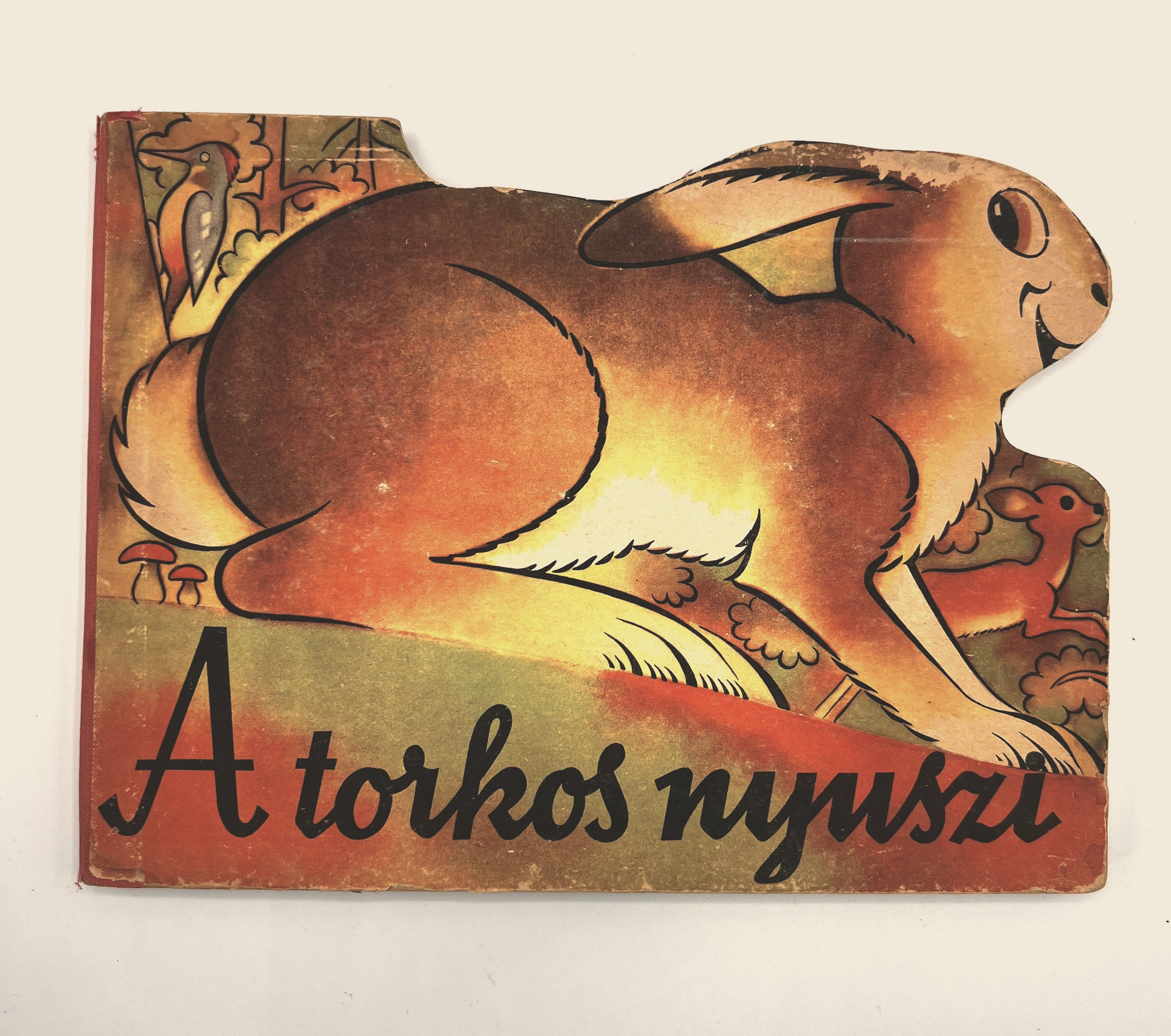 Budapest, 1970. Hardcover. Color illustrated shaped boards. Very good. Unpaginated. [12 pp.] 17.5 x 23 cm. Shaped, board book featuring a bunny and all his forest friends. Brightly and colorfully illustrated throughout. Pages and covers toned. Covers rubbed. Text in Hungarian.