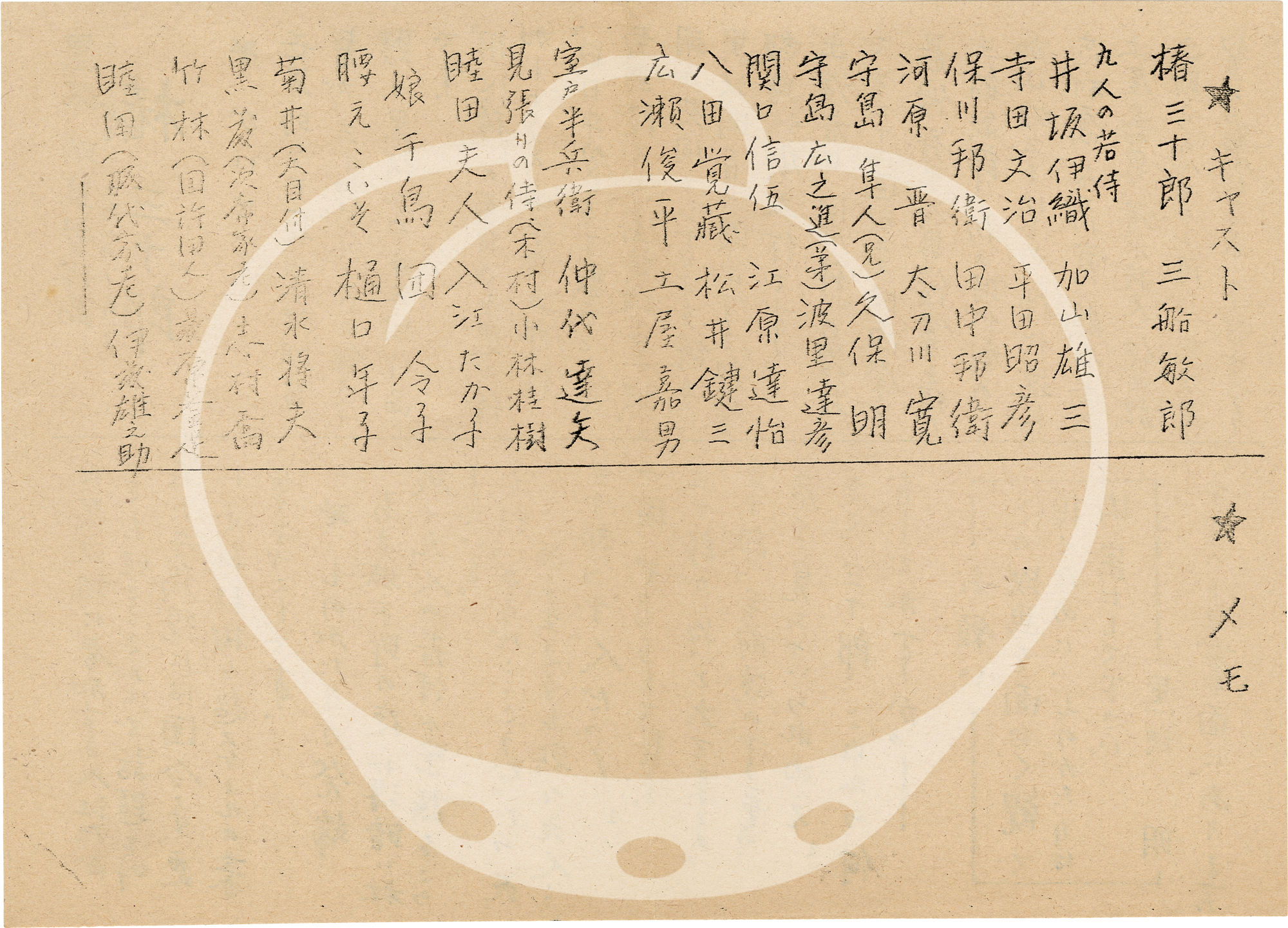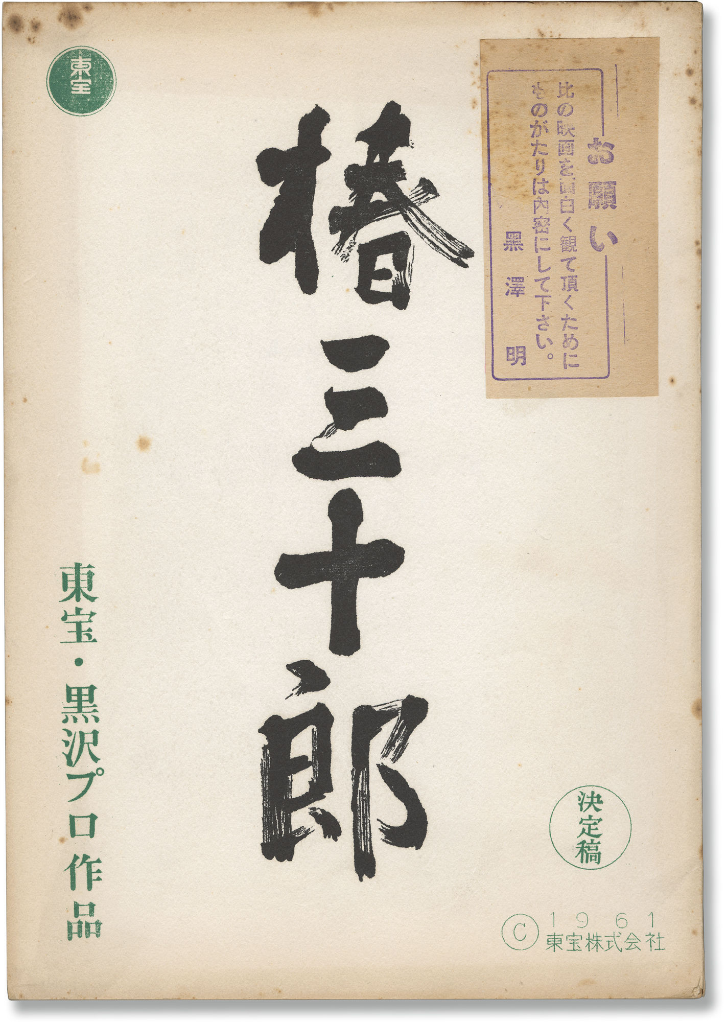 Tokyo: Toho Company / Kurosawa Productions, 1961. Draft script for the 1962 film. Text and titles in Japanese. With a promotional leaf in Japanese laid in with the script.