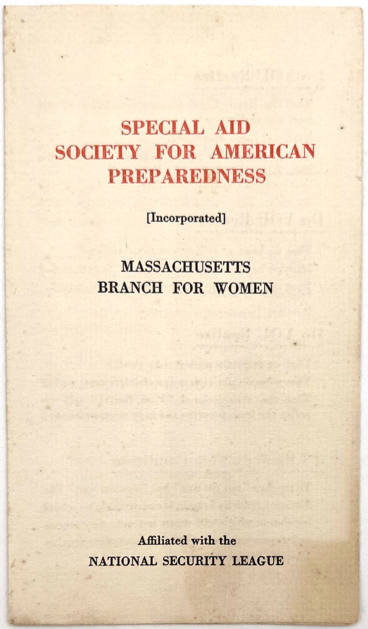 Massachusetts Branch for Women of the Special Aid Society for American Preparedness - [Promotional Pamphlet]