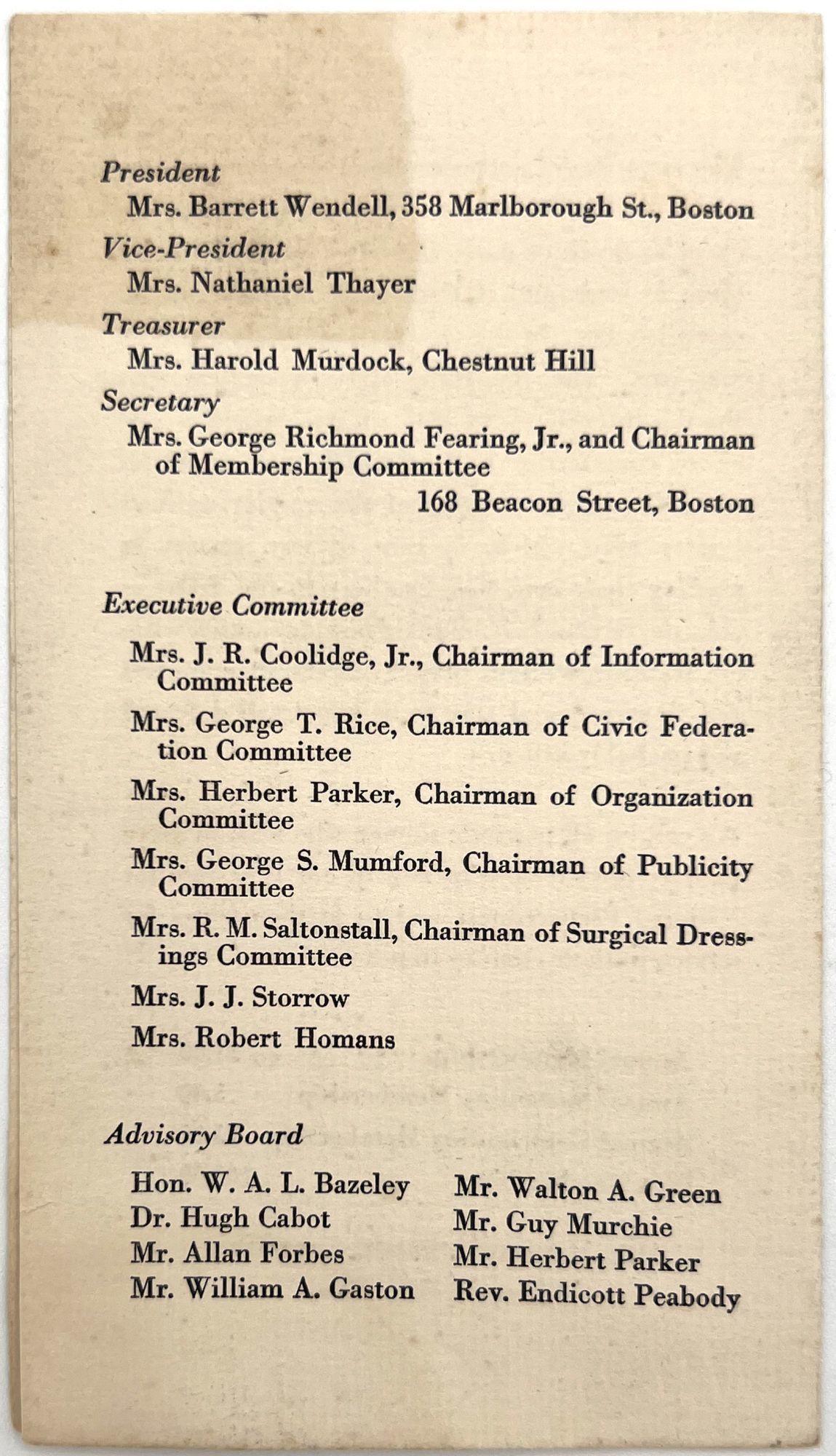 - Boston, Massachusetts: Massachusetts Branch for Women of the Special Aid Society for American Preparedness, 1916