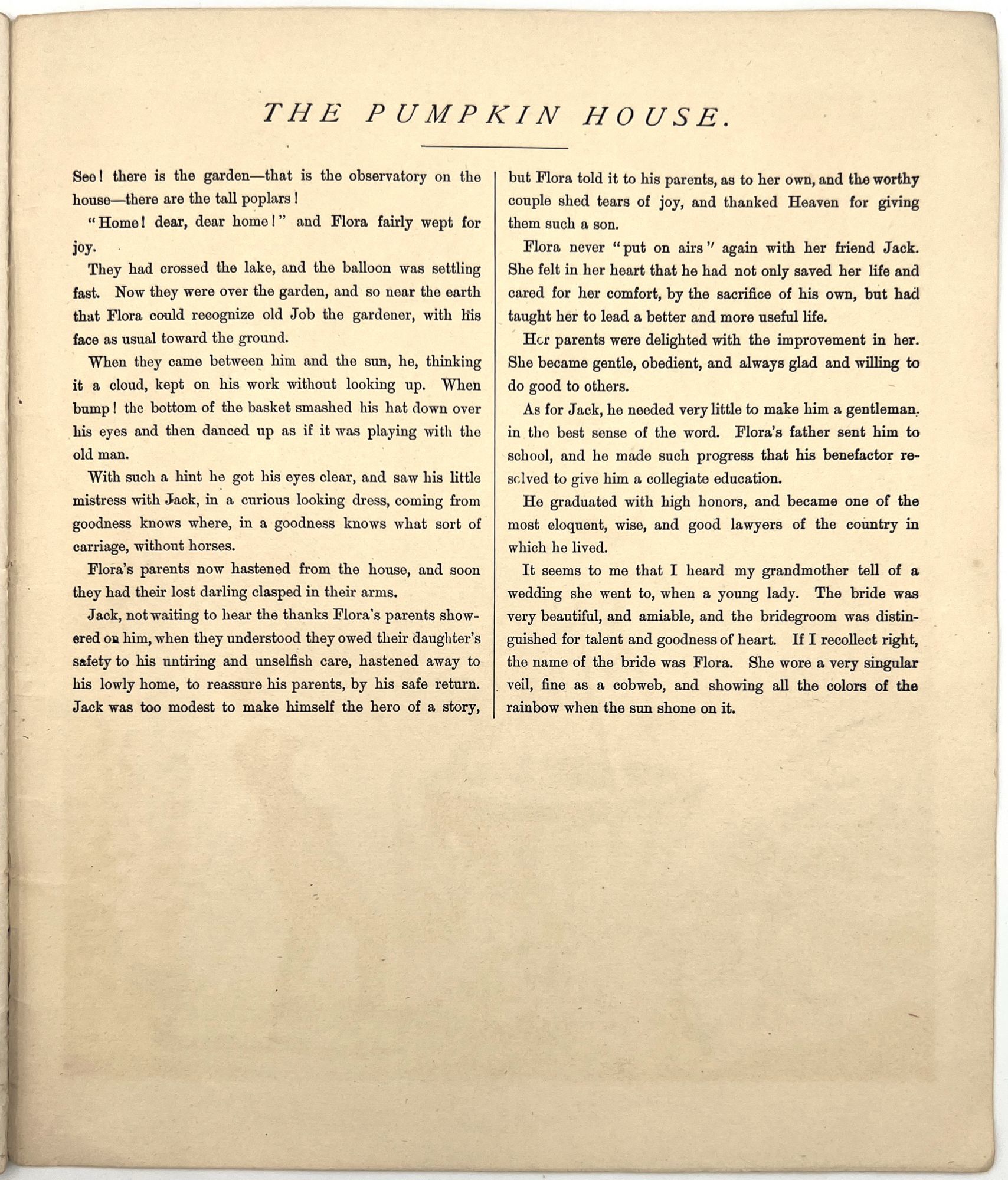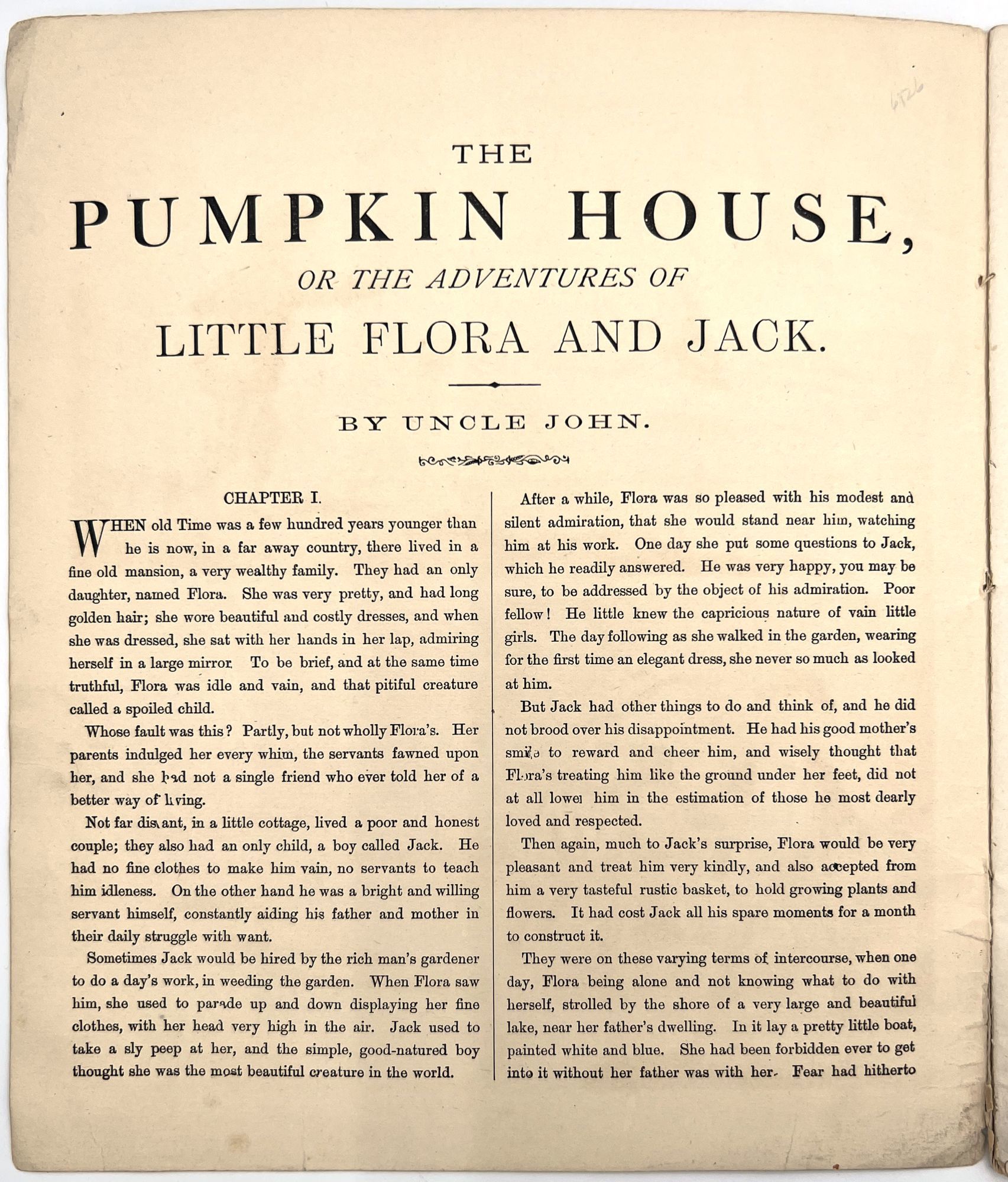 The Pumpkin House, or the Adventures of Little Flora and Jack. By Uncle John
