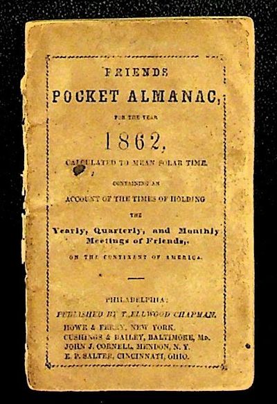 Philadelphia: T.Ellwood Chapman, 1862. Paperback. Good -. Paperback. Bound in the original brown paper wrappers with black title to front. Covers are detached, but present. Minor chipping to wrappers. Includes a few pencil annotations. 46 pages. Size: 4-1/4 x 2-3/4. Almanac. ALM/122723.
