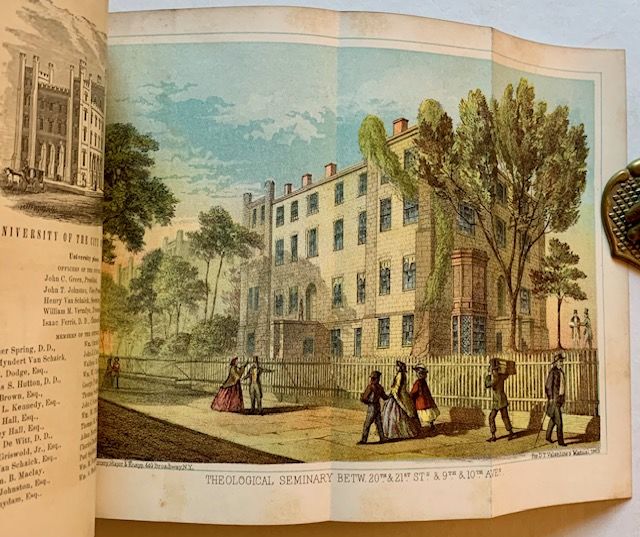 New York: D. T. Valentine, 1863. Decorative Boards. Very Good. The 1863 issue of D.T. Valentine's epic 19th century manual of New York City. Tight and VG to VG+ in its navy-blue cloth, with lavish blindstamping and gilt-design and titling to the panels. Dozens of fold-out maps, charts and crests throughout, a number of them in chromolithography. A gennereous amount of engravings as well, all designed to give a deep visual sense of a city which by the mid 19th century was already teeming with life and commerce. Very thick 12mo, over 860 pgs. of text.