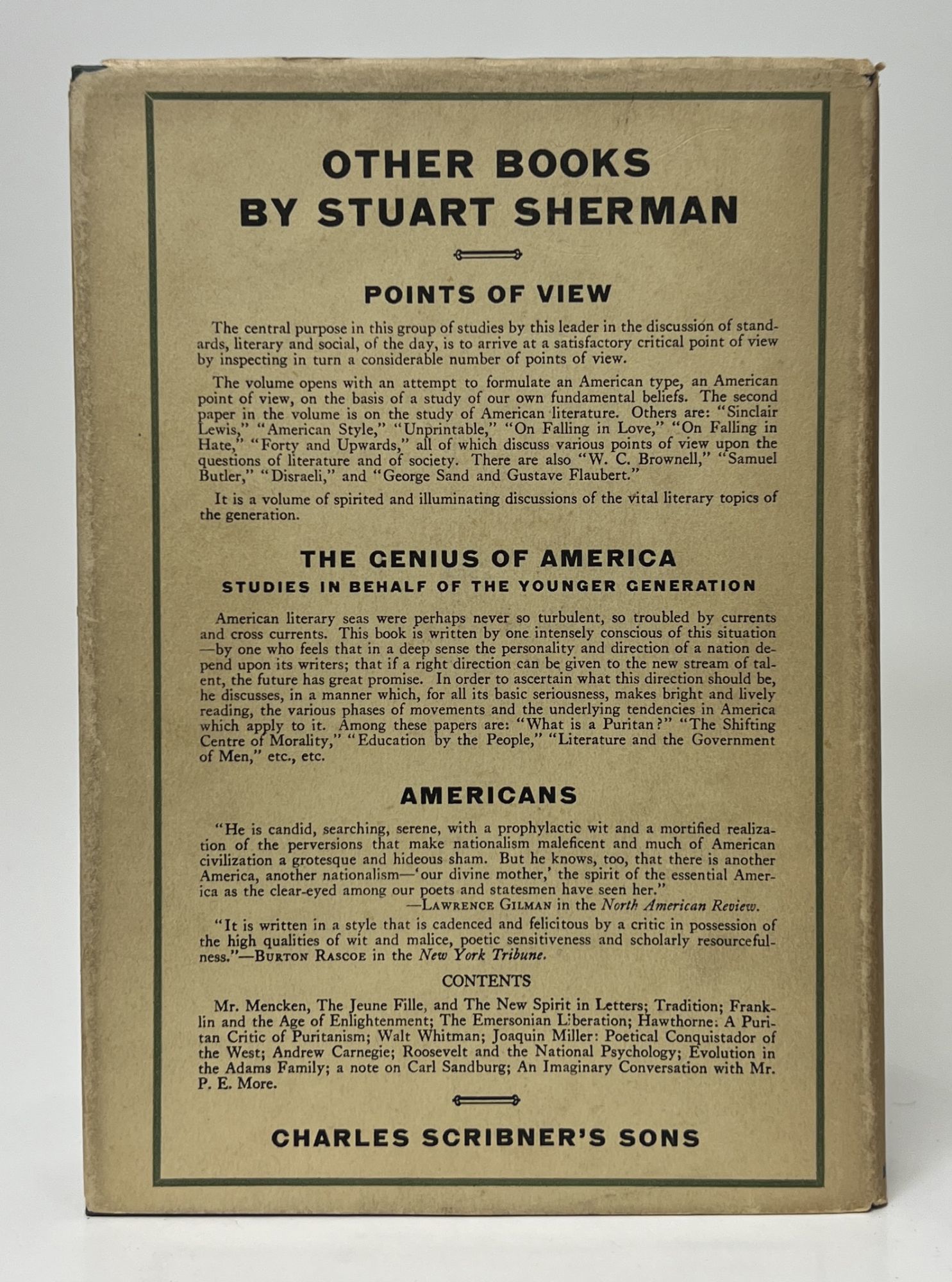New York: Charles Scribner's Sons, 1926. First Edition. Hardcover. Near Fine/Very Good. Illustrated by Bertrand Zadig. Near Fine in a Very Good jacket, unclipped ($2.50), generally toned, bumped and with some small chips at the edges. Green cloth with a tan paste-down label on the spine. Square and firmly bound, foxed at the edges, clean internally. A collection of literary criticism about the likes of Willa Cather, Sherwood Anderson, Oscar Wilde, D.H. Lawrence, among others.