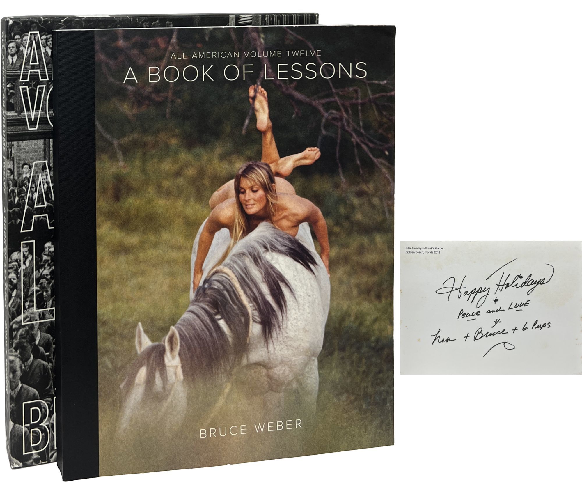 Kempen: teNeues, 2012. First Edition. Paperback. Near Fine. With a postcard inscribed by Weber laid in. Near Fine in a Near Fine slipcase, lightly rubbed. Wraps bumped and creased at the back. Square and firmly bound, some bumps near the rear of the textblock. This entry into Weber's photobook series includes a poem by Frank O'Hara and photographs of and essays about Danny Trejo, Kaffe Fassett, Studs Terkel, Mabel Dodge Luhan, Danielle Faith Green, Barney Rosset, Bo Derek, Nile Rodges, and Polly Mellen.