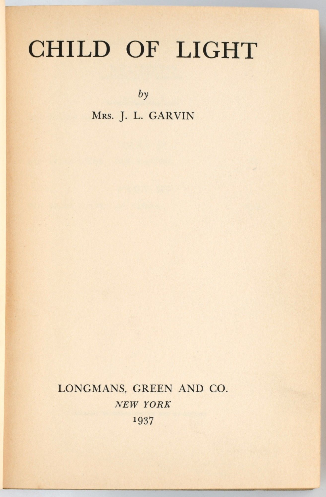 New York: Longmans, Green and Co, 1937. First American Edition. Hard Cover. Very Good binding/Very Good dust jacket. 8vo.; in the publisher's gray cloth, with dustjacket; 4 preliminary leaves, 3-278 pages in a dusjtacket which has not been price-clipped; there are notes about terms for renting the book penciled on the front endpaper.~~A pre-World War II novel of a religious nature, by the second wife of J. L. Garvin editor. of the London newspaper The Observer. Very Good binding / Very Good dust jacket.
