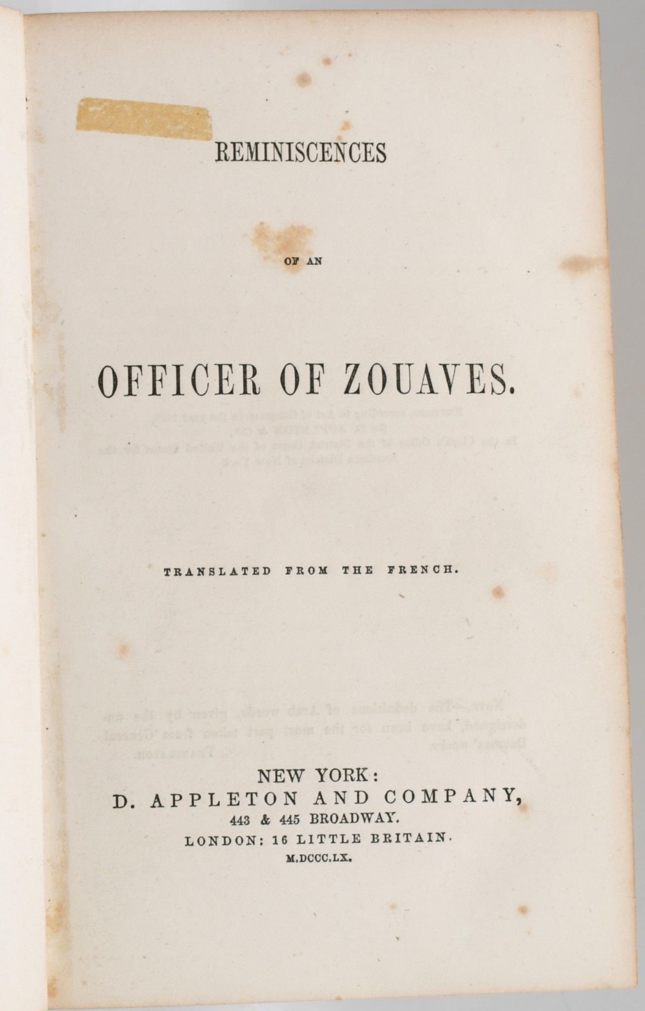 [MILITARY] REMINISCENCES OF AN OFFICER OF ZOUAVES