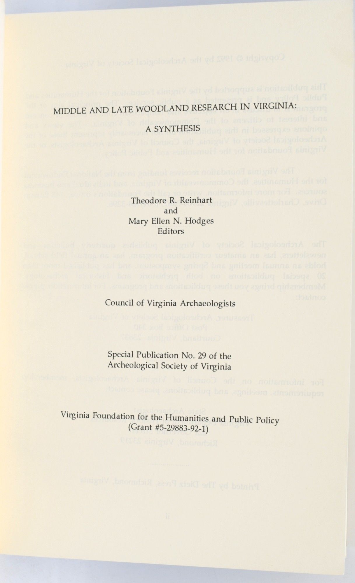 - Archeological Society of Virginia, 1992