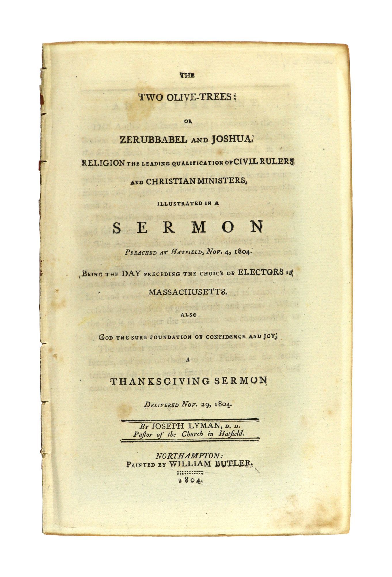 The Two Olive-Trees; or, Zerubbabel and Joshua. Religion the Leading Qualification of Civil Rulers and Christian Ministers, Illustrated in a Sermon Preached at Hatfield, Nov. 4, 1804. Being the Day Preceding the Choice of Electors in Massachusetts. Also God the Sure Foundation of Confidence and Joy; a Thanksgiving Sermon Delivered Nov. 29, 1804