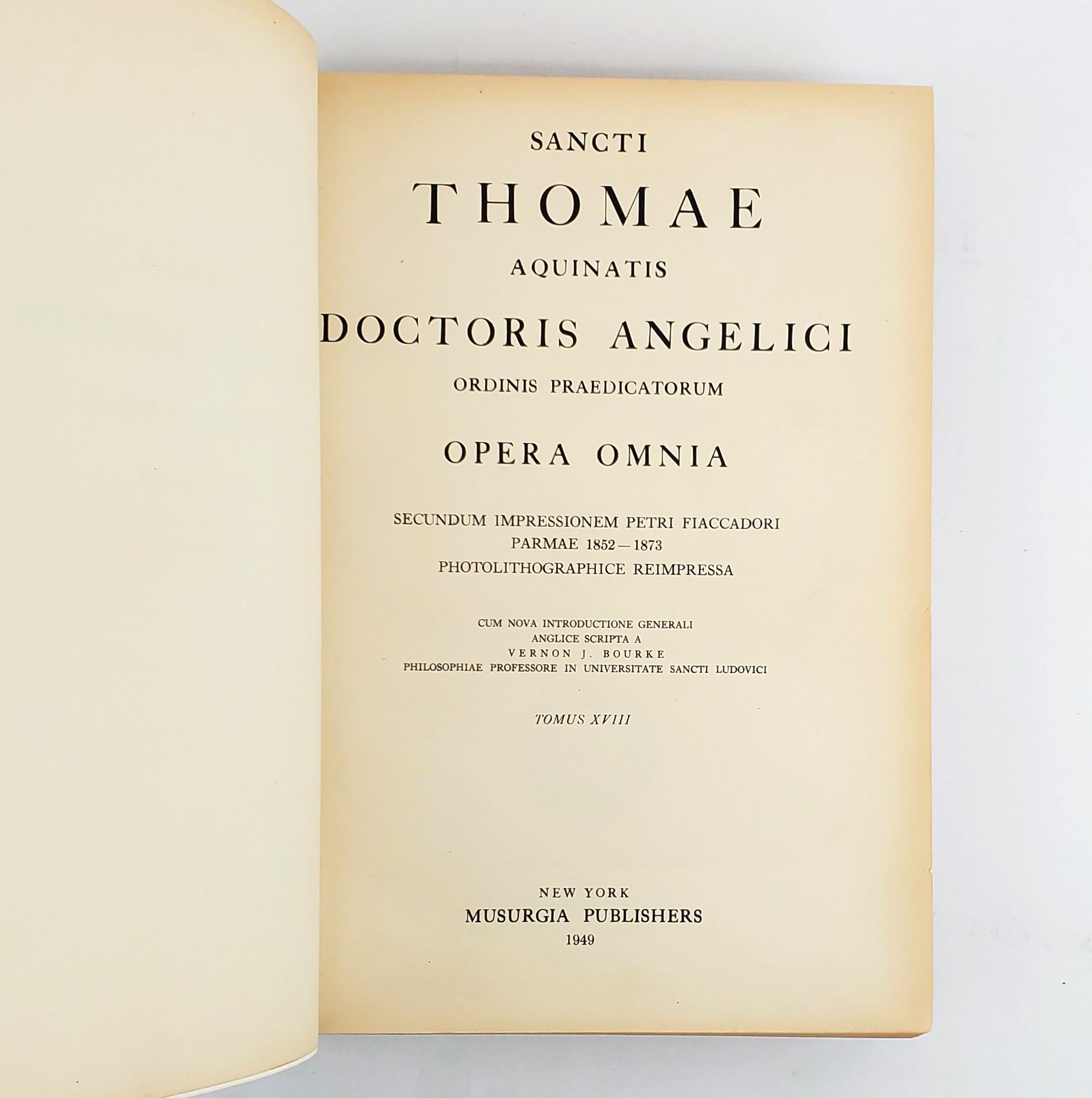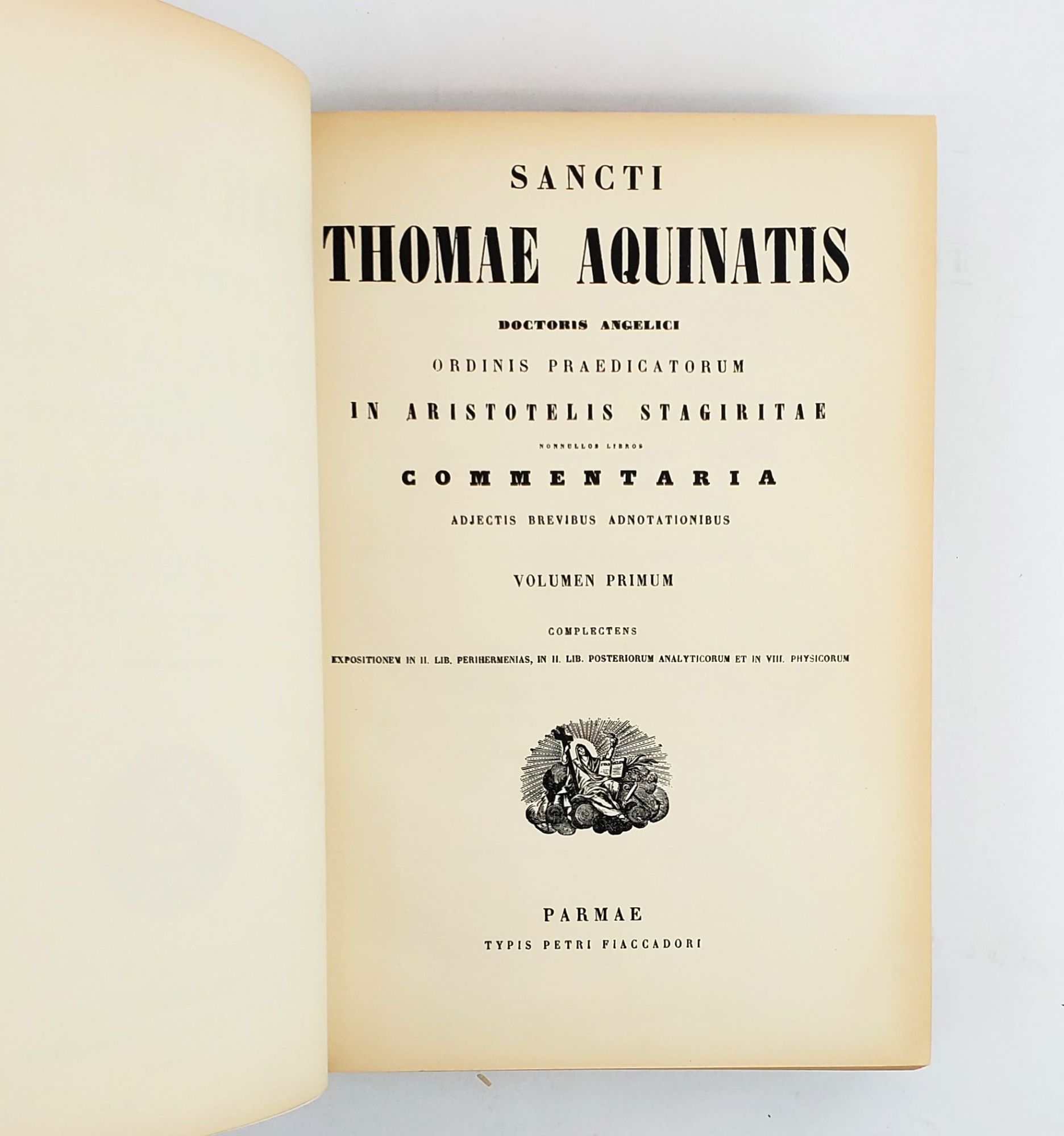 OPERA OMNIA : SECUNDUM IMPRESSIONEM PETRI FIACCADORI PARMAE 1852 - 1873, PHOTOLITHOGRAPHICE REIMPRESSA. TOMUS XVIII: SANCTI THOMAE AQUINATIS DOCTORIS ANGELICI ORDINIS PRAEDICATORUM IN ARISTOTELIS STAGIRITAE NONNULLOS LIBROS COMMENTARIA ADJECTIS BREVIBUS ADNOTATIONIBUS. VOLUMEN PRIMUM: COMPLECTENS EXPOSITIONEM IN II. LIB. PERIHERMENIAS, IN II. LIB. POSTERIORUM ANALYTICORUM ET IN VIII. PHYSICORUM
