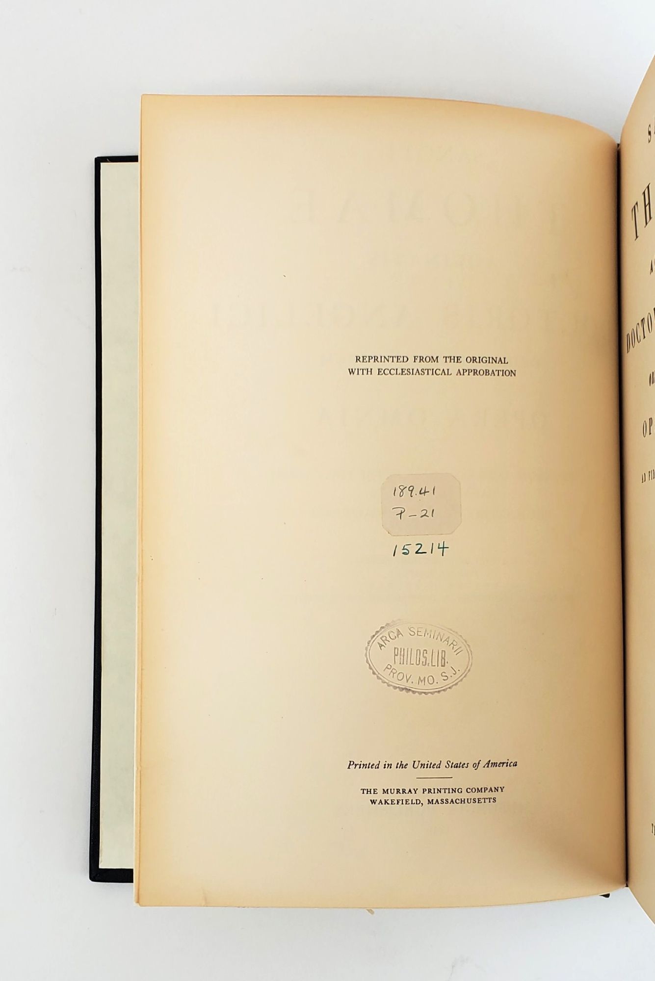 New York: Musurgia Publishers, 1949. Reprint. Hardcover. Quarto, xii, 543 pages. In Good condition. Ex-library with library stamp and call number on title page verso. Spine is blue with gold print. Text in Latin.