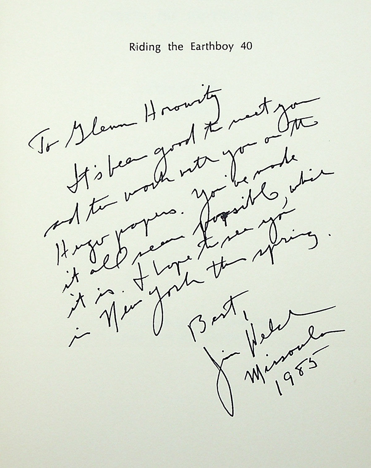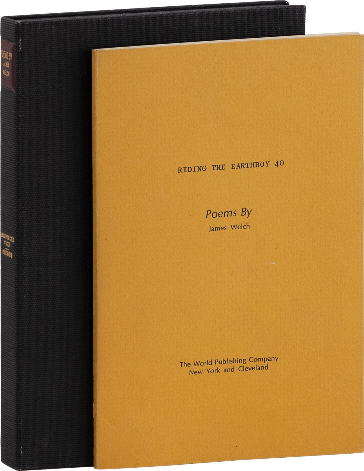New York: World, 1971. First Edition. Uncorrected proofs. Mustard wrappers; 8vo. 54 pp. With a long inscription, in part: "To __ __ It's been good to meet you and to work with you on the Hugo papers..." and signed "Jim Welch Missoula, 1985". Native American writer's first book, a collection of poetry. He was a central figure of the Missoula writers Mafia with Kittredge, Hugo, Crumley and others. Fine, housed in a fine cloth clamshell case with leather label. Scarce proof, rare signed.