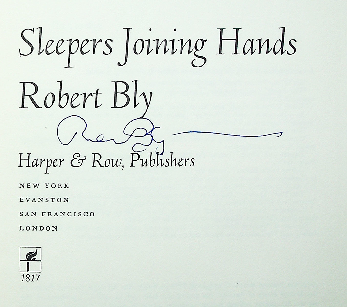 New York: Harper & Row, 1973. First edition. First Printing, cloth issue. Large octavo; cloth-backed boards; dustjacket; 67pp. Signed by Bly on title page. A Very Good copy. Dustwrapper has some soiling and edge wear, and original bookstore price sticker on back; Very Good. Published simultaneously in paperback and often reprinted. Bly's third book, scarce signed.