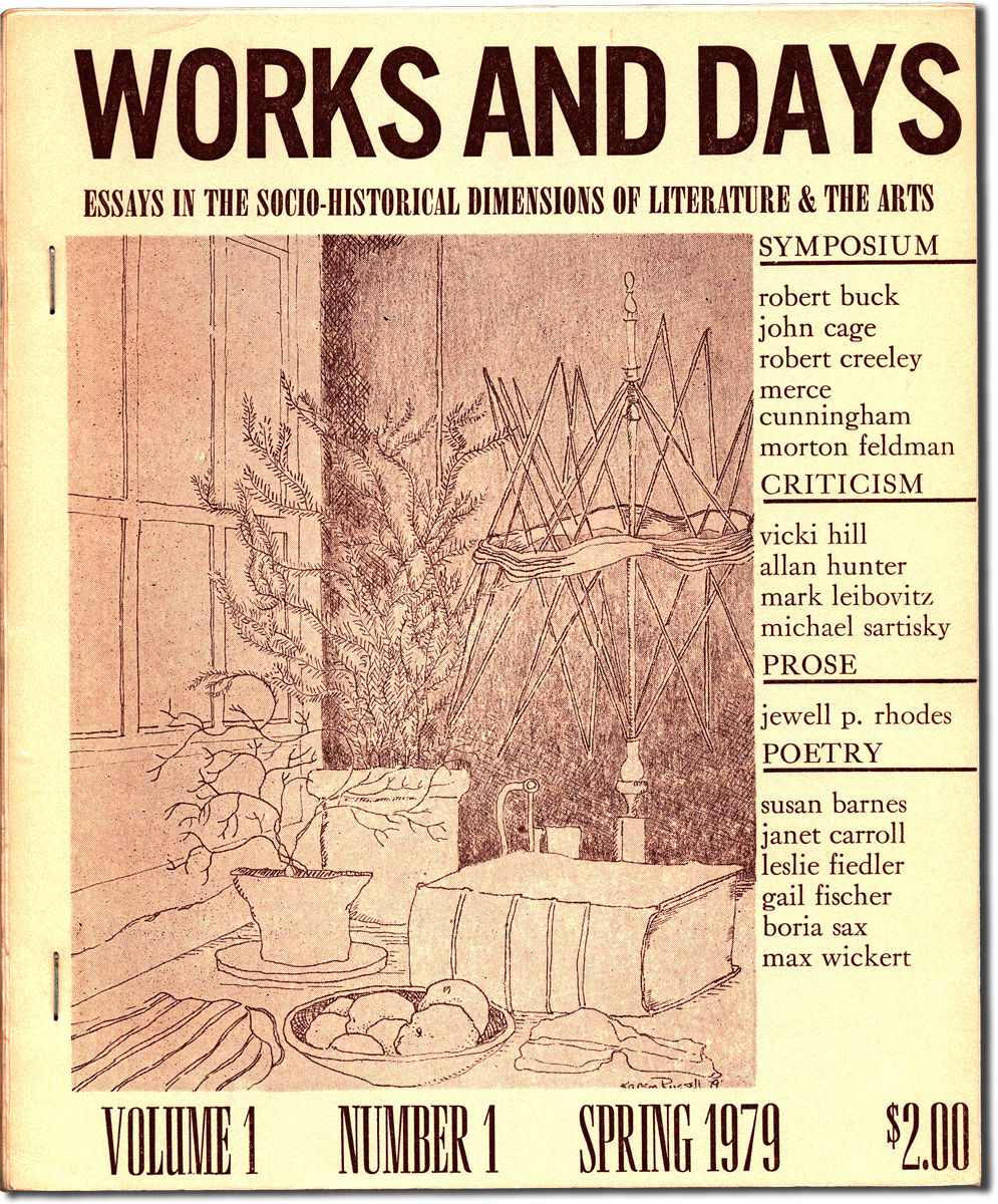 Buffalo: State University of New York at Buffalo, Spring 1979. First Edition. Side-stapled illustrated wrappers; square 8vo. 95 pp. Reprints portions of a symposium with Robert Creely, JohnCage, Merce Cunningham, Morton Feldman and others participating; poetry by Leslie Fiedler, Susan Barnes, Gail Fischer and others. Intended as a tri-quarterly for interdisciplinary work, this may well be the only issue: scarce, with copies held at Buffalo and Wyoming. Near fine.
