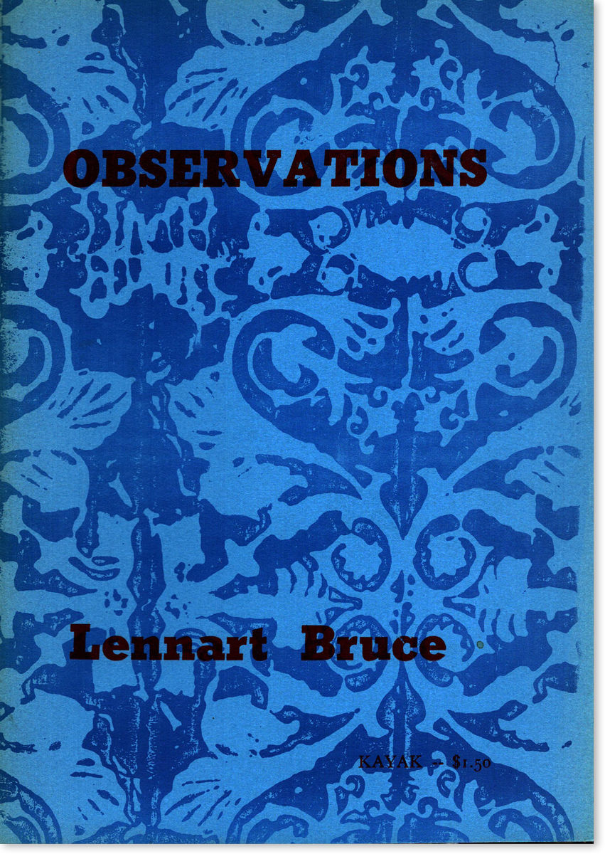 San Francisco: Kayak Press, 1968. First edition. Blue patterned stapled wrappers; 8vo. 68 p. Inscribed to Allan Brilliant, publisher of Unicorn Press, with a letter Tls on onion skin laid in thanking him for the Unicorn Folios (not present) and conveying this book. illustrated with prints by George Hitchcock. 800 copies printed on heavy multi-colored papers. Extremities sunned, otherwise a fine copy.