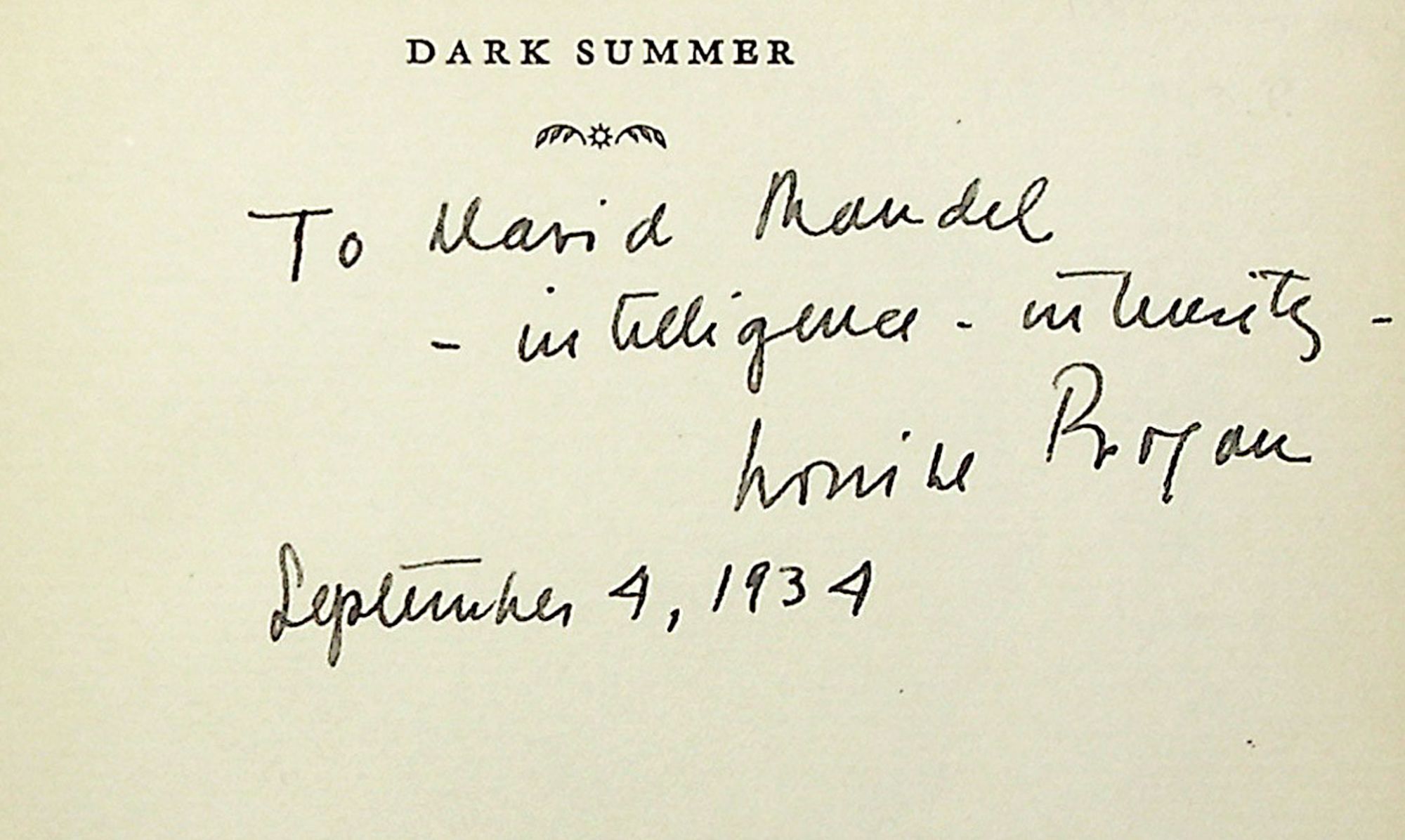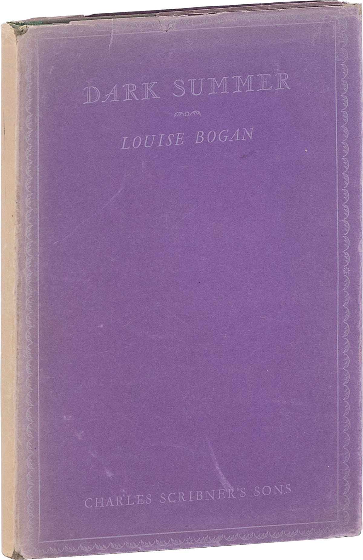 New York: Scribners, 1929. First edition. Cloth-backed linen covered boards, with spine and front paper labels; small 8vo. 72 pp. Briefly signed and inscribed in 1934 on half-title page. Poet's second book. Extremities unevenly sunned, with minor wear, else Very Good and clean. The scarce purple dustjacket is heavily faded at the edges and spine, with four small pieces of tape on verso mending short tears, else Very Good. An important collection - Eight of the twenty-four poems by Bogan chosen for the Library of America selection of 20th C poets (where she is well-represented), are from this volume. A very scarce book signed in dustjacket which is, due to the fragile paper and the color, prone to wear and fading.