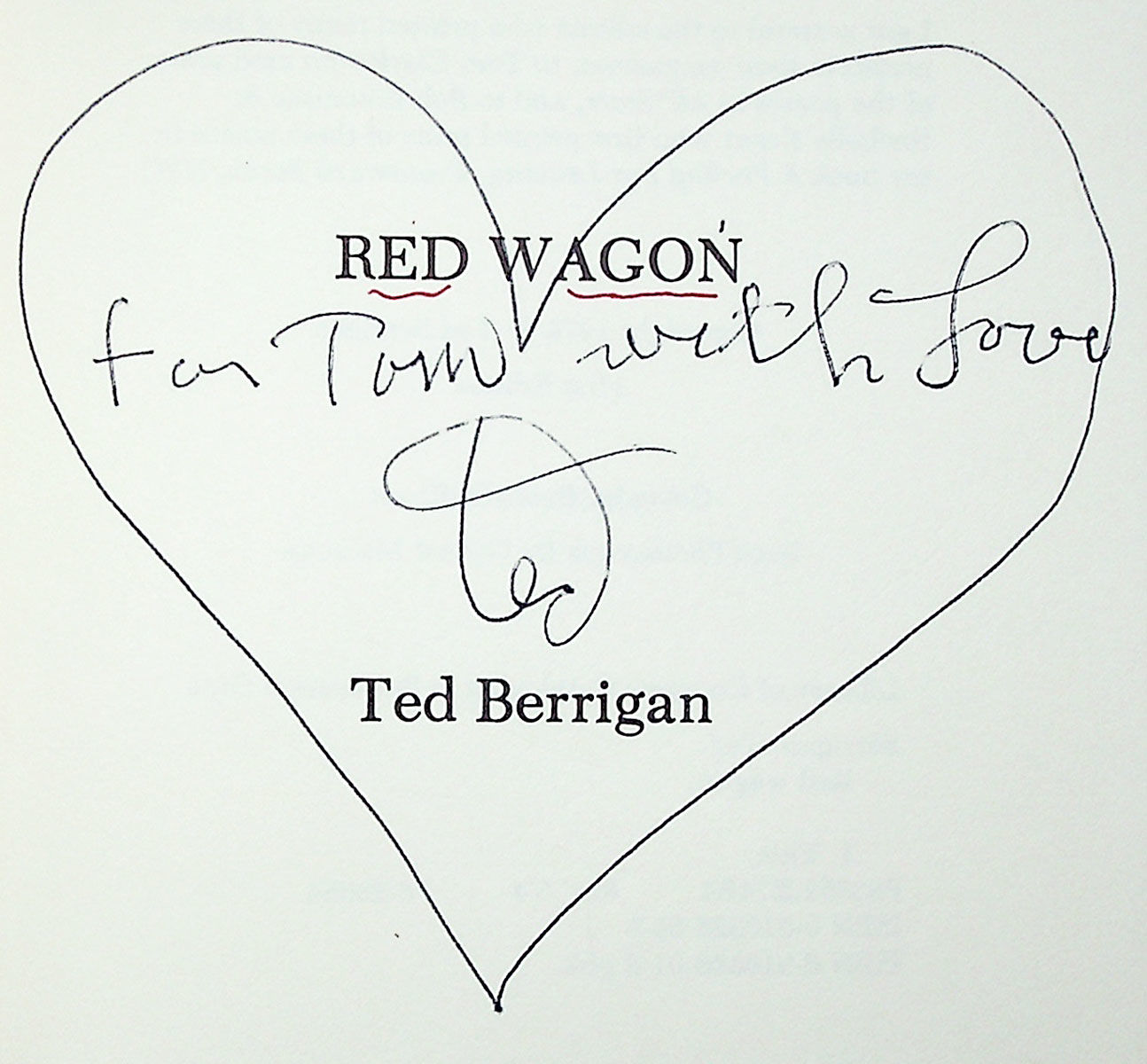 Chicago: The Yellow Press, 1976. First edition. Red, gold embossed, cloth; 8vo. Cover by Rochelle Kraut; jacket photo by Gerard Malanga. Inscribed "Tom with Love" and signed "Ted". Near fine, one corner bumped, in a very good rubbed (backpanel) lightly worn at extremities complete dust jacket; spine a bit faded, one edge with a short closed tear.