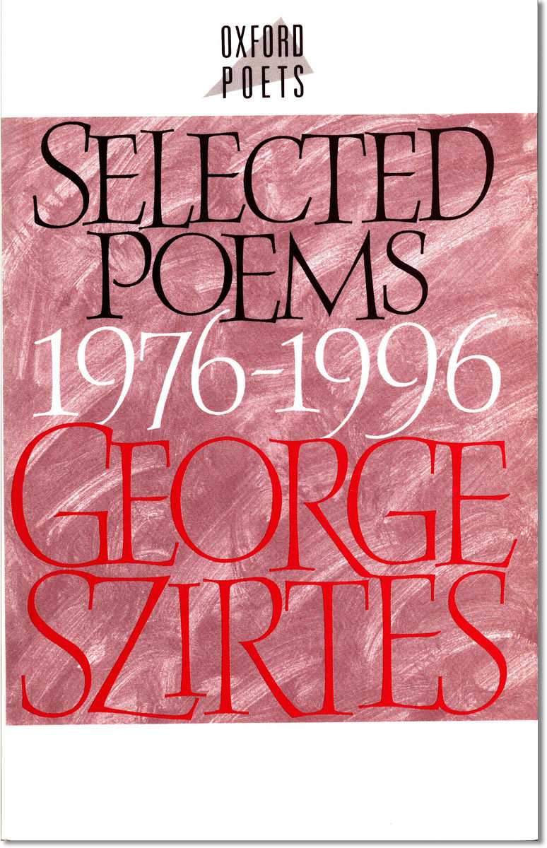Oxford: Oxford University Press, 1996. First Edition. Trade paperback original 117 pp. Inscribed by Szirtes to an American poet (and his wife) associated with New Formalism. Szirtes was born in Hungary and came to Great Britain as a child in 1956 after the Hungarian Uprising. Known for his translations from the Hungarian and for his use of form. Fine copy.