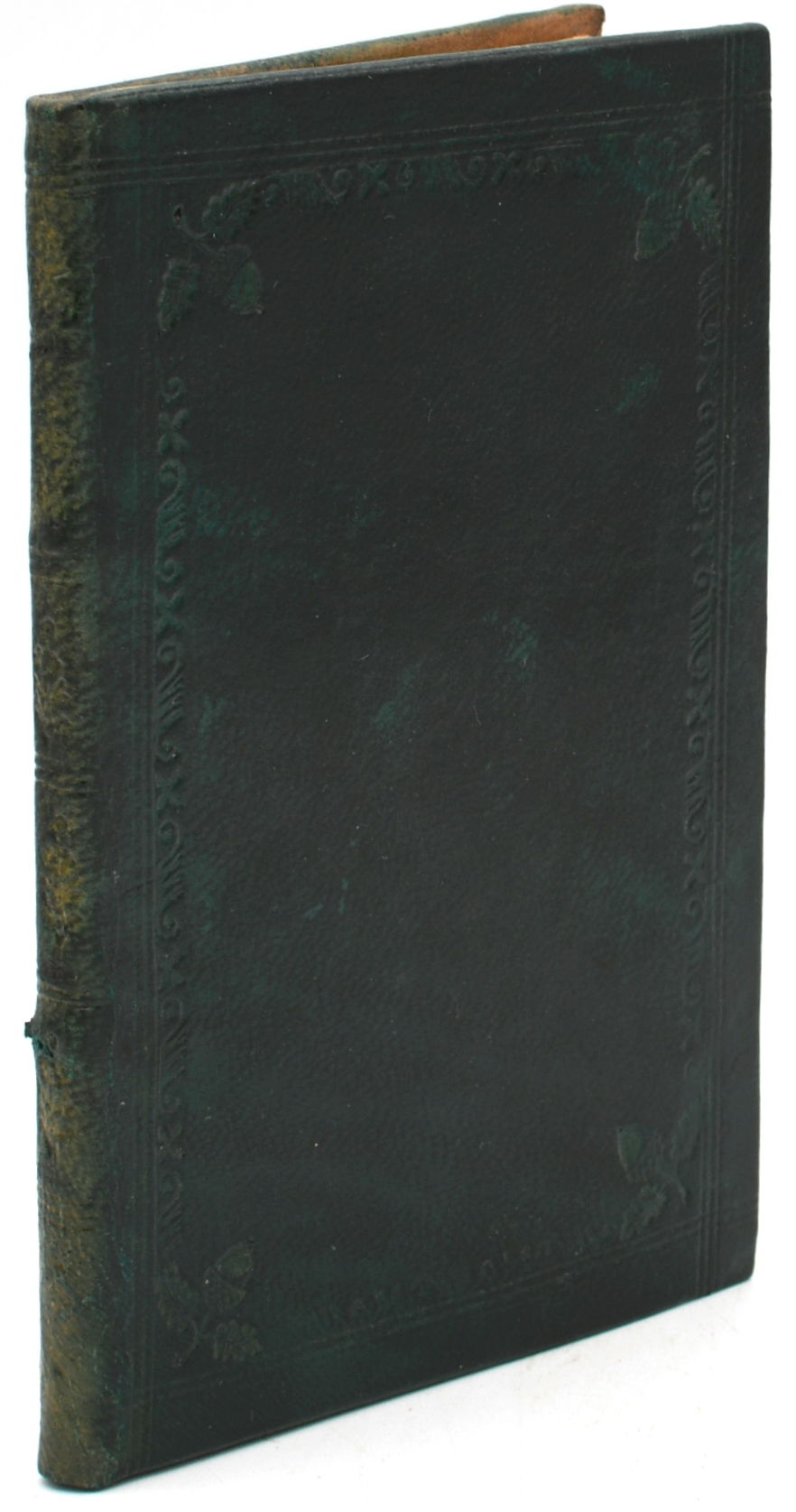Williamsburg [Va.] 1956: Printing Office of Colonial Williamsburg, 1956. Full Leather. Very Good binding. 24mo.; in full green morooco, double ruled in blind to the perimeter of the boards, with inner decorative rule with acorn motif at the corners; spine with gilt decorations; [2], 3-26 pages, followed by colophon; illustrated with woodcuts throughout. There is a small amount of green "bleed" at the bottom of the front pastedown, next to the turn-in.~~"This book is intended to represent an example of the literature produced for young people of the 18th century. Although inspired by a book in the library of Columbia University, it is not a facsimile of any one volume. The book is set by hand in Caslon Type at the Printing Office of Colonial Williamsburg by August R. Klapper, Master Printer. The illustrations for this publication were printed from wood blocks engraved by Carl Anderson Rosenberg of the College of William and Mary, Williamsburg in Virginia. Very Good binding.