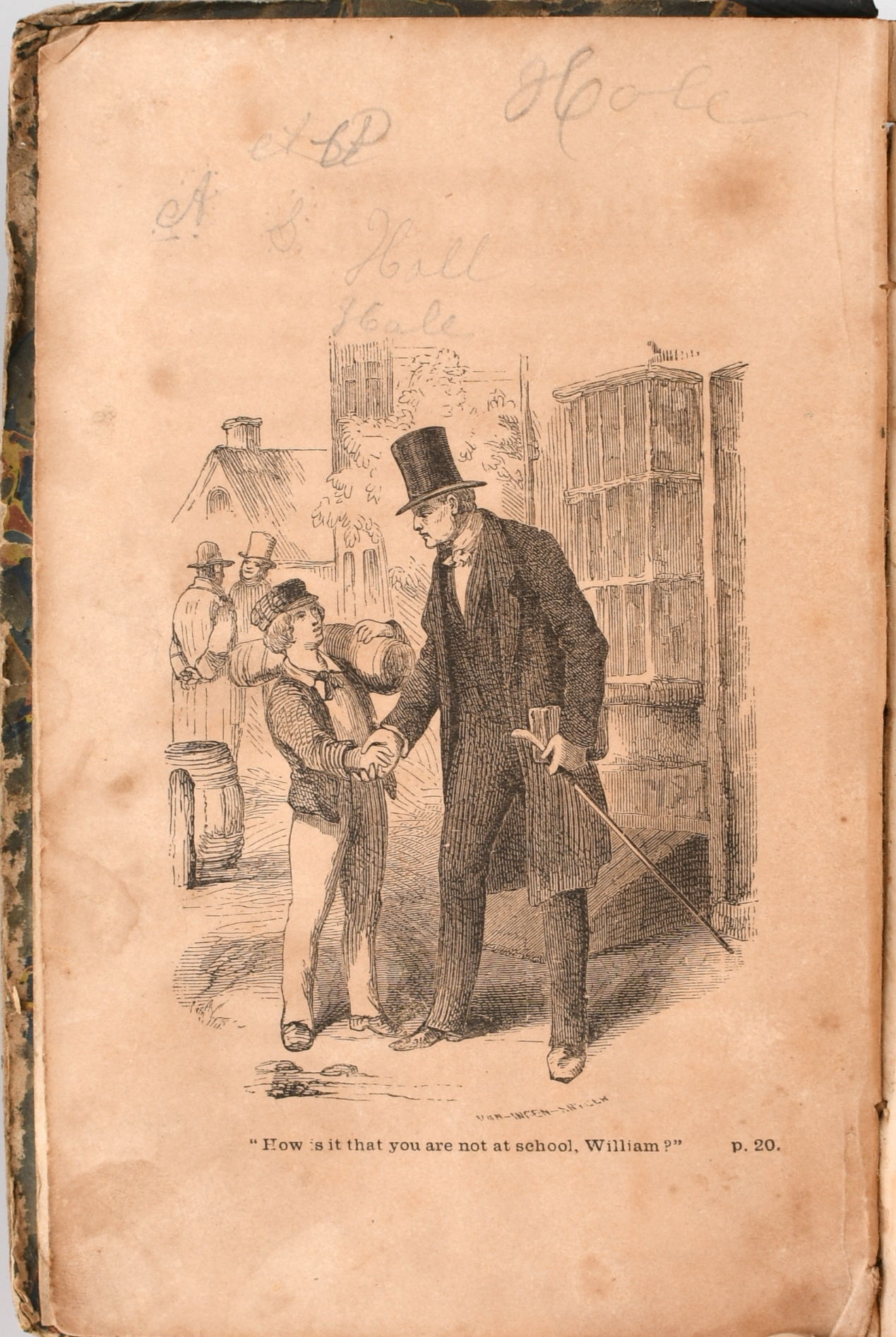 Philadelphia: Presbyterian Board of Publication, 1856. Quarter Leather. Good binding. 16mo.; quarter black morocco over marbled boards; [2],- 108 pages, with frontispiece "How is that you are not at school, William?"; a worn copy with contemporary ownership marks and scribbles; Sunday School presentation label on the pastedown mostly effaced; worn with stains and foxing.~~The pseudonymous edifying works for children are by the evangelical Anglican Bishop of Liverpool, J. C. [John Charles] Ryle.~~The book is uncommon in commerce and we find but a handful of institutional holdings.~~. Good binding.