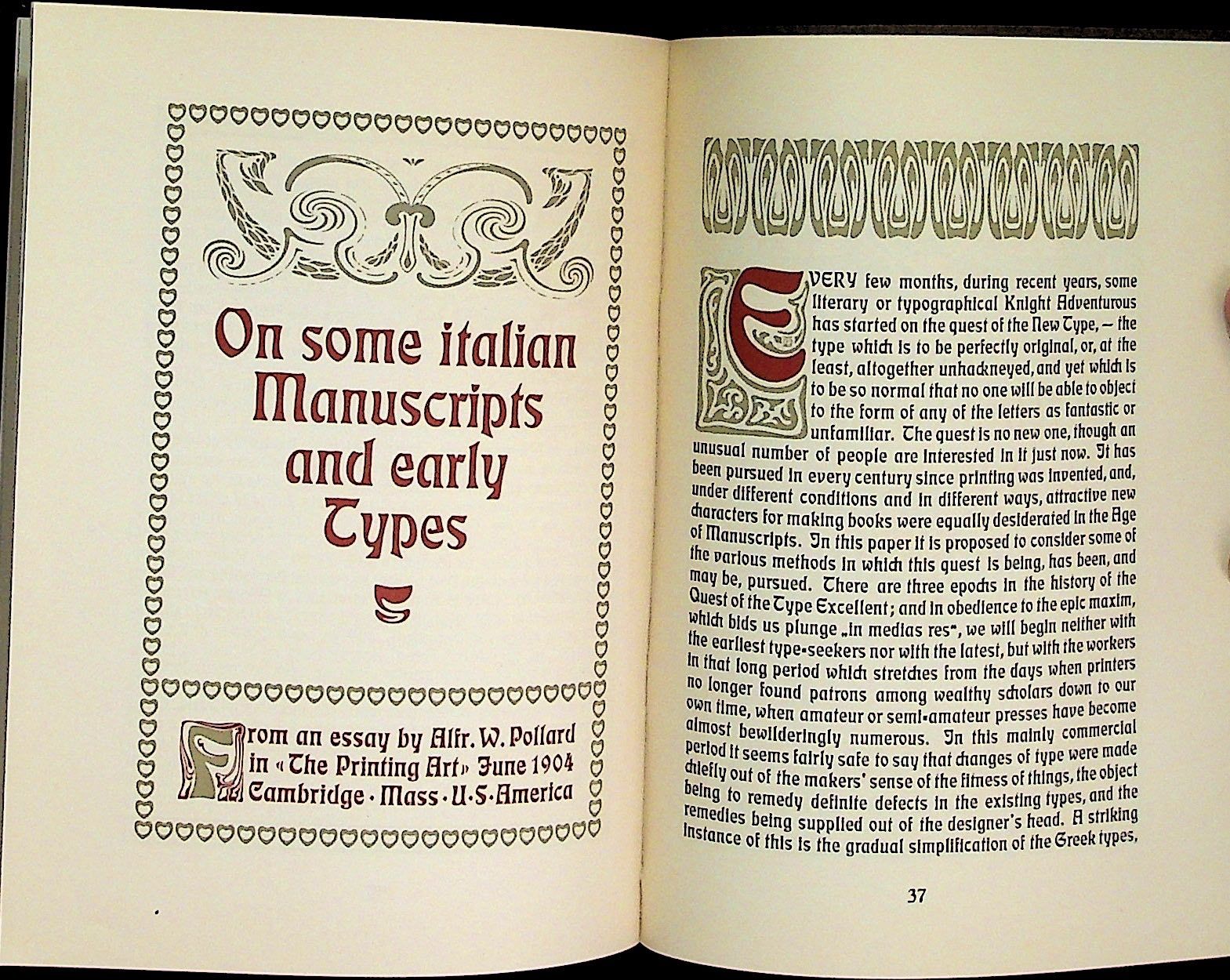 Offenbach, Germany: Rudhardsche Giekerei, 1905. Softcover. Very Good. Softcover. These marginal notes to accompany On the Psychology of Writing assert that the main pyschological concept applies not only to handwriting, but also to any line of expression, including printing. The notes are focused on black-letter printing, beginning with a discussion of German and Latin text. Includes many interesting examples of different black-letter printing styles. Octavo. Brown paper covers with title in maroon and green borders to front cover. Pages are neat and clean. 39 pages. PSYCH/011124.