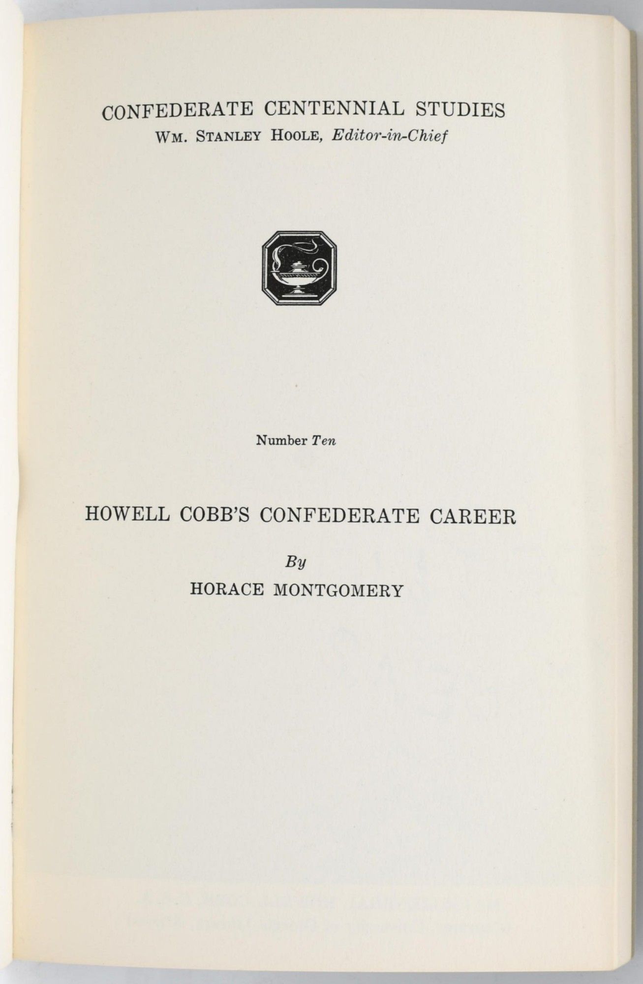 Tuscaloosa. Alabama: Confederate Publishing Company, Inc, 1958. First Edition. Soft Cover. Near Fine binding. 8vo.; in grey wrappers with the battle flags in color on the cover; 144 pages, including the Index; there are no marks of any kind in the book, and the binding has no creases or any other evidence of wear.~~In the Nevins bibliography: "A brief but excellent study of the eminent Georgian who chose to serve the Confederacy in a military capacity." (Nevins II, 77). Near Fine binding.