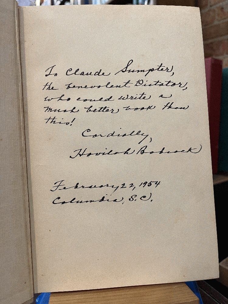 Greenberg: New York, 1947. Hardcover. Good. Signed. Inscribed by Havilah Babcock on the front free endpaper with other name and date written on the front pastedown. No dust jacket. Cloth boards have a small dime coin sized stain to the middle of the front board. Has a good binding, no marks or notations. 284 pp. Fourth Printing, 1952.