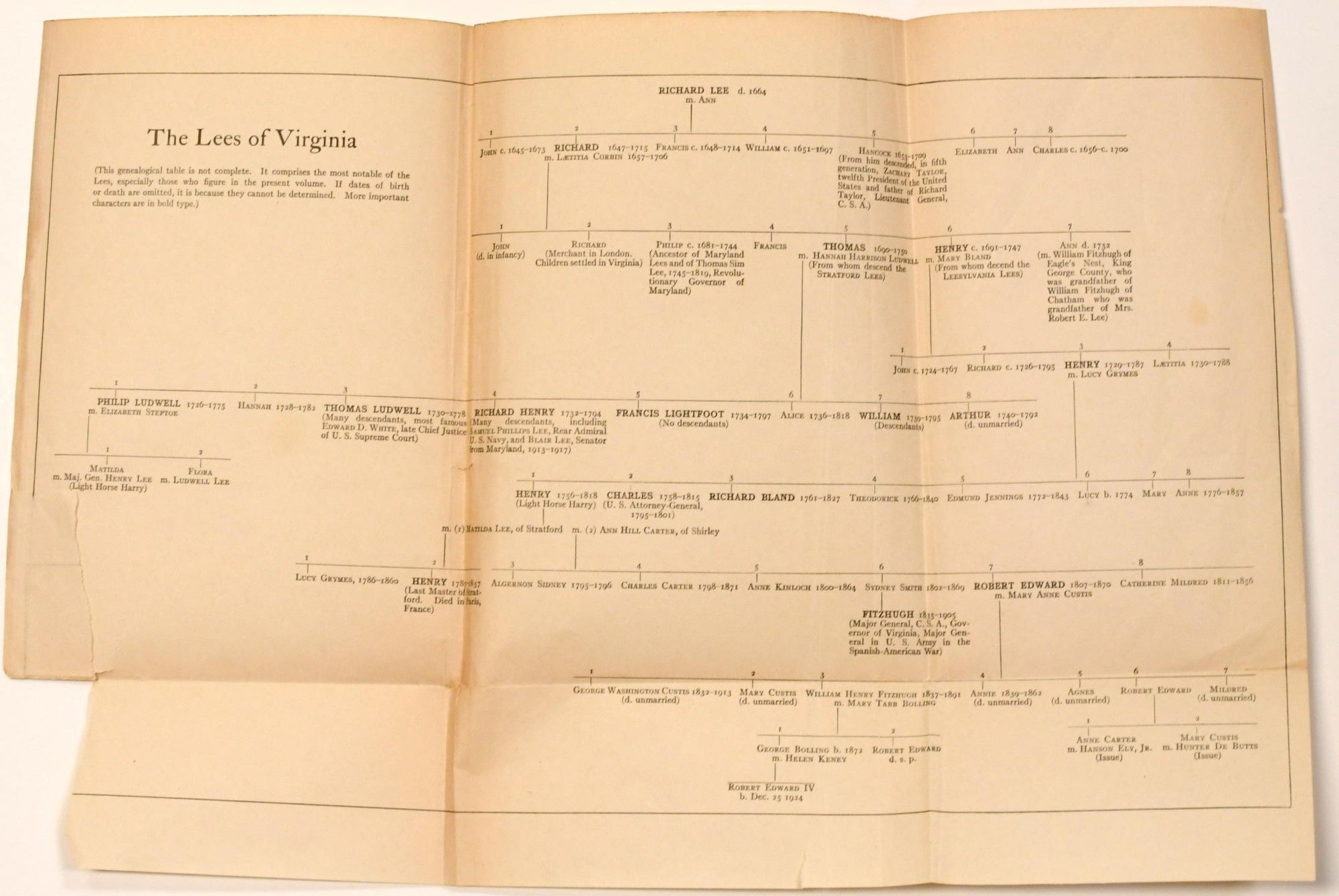 [Philadephia]: [Times Printing House], 1893. First Edition. Flexible Cloth. Very Good binding. 8vo., in terracotta flexible cloth boards with titling in gilt to the upper board; 57 pages with folding pedigree chart; laid in at the back of the book is the pedigree chart of The Lees of Virginia.~~This history is most uncommon in the first printing, with the folded chart. Very Good binding.